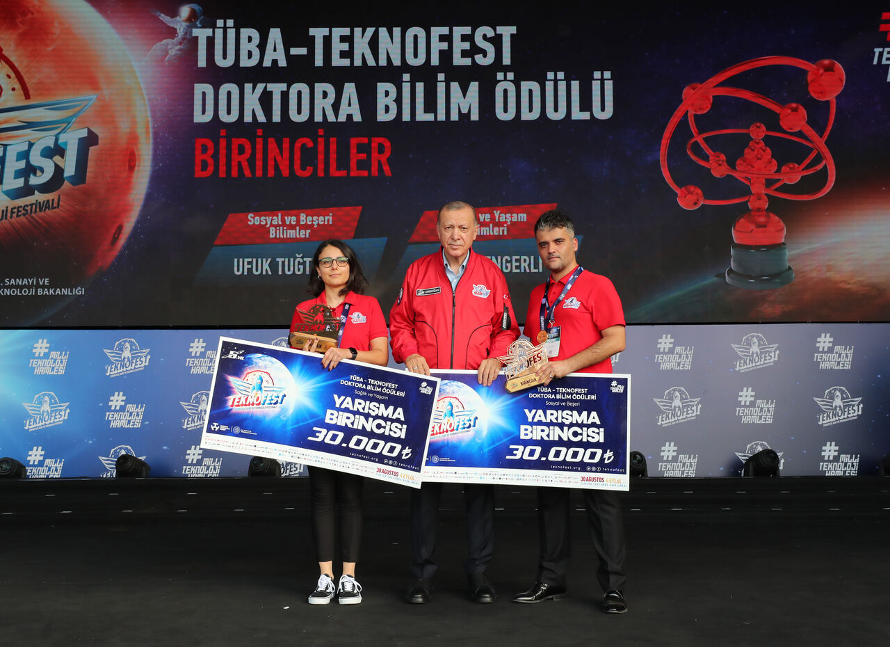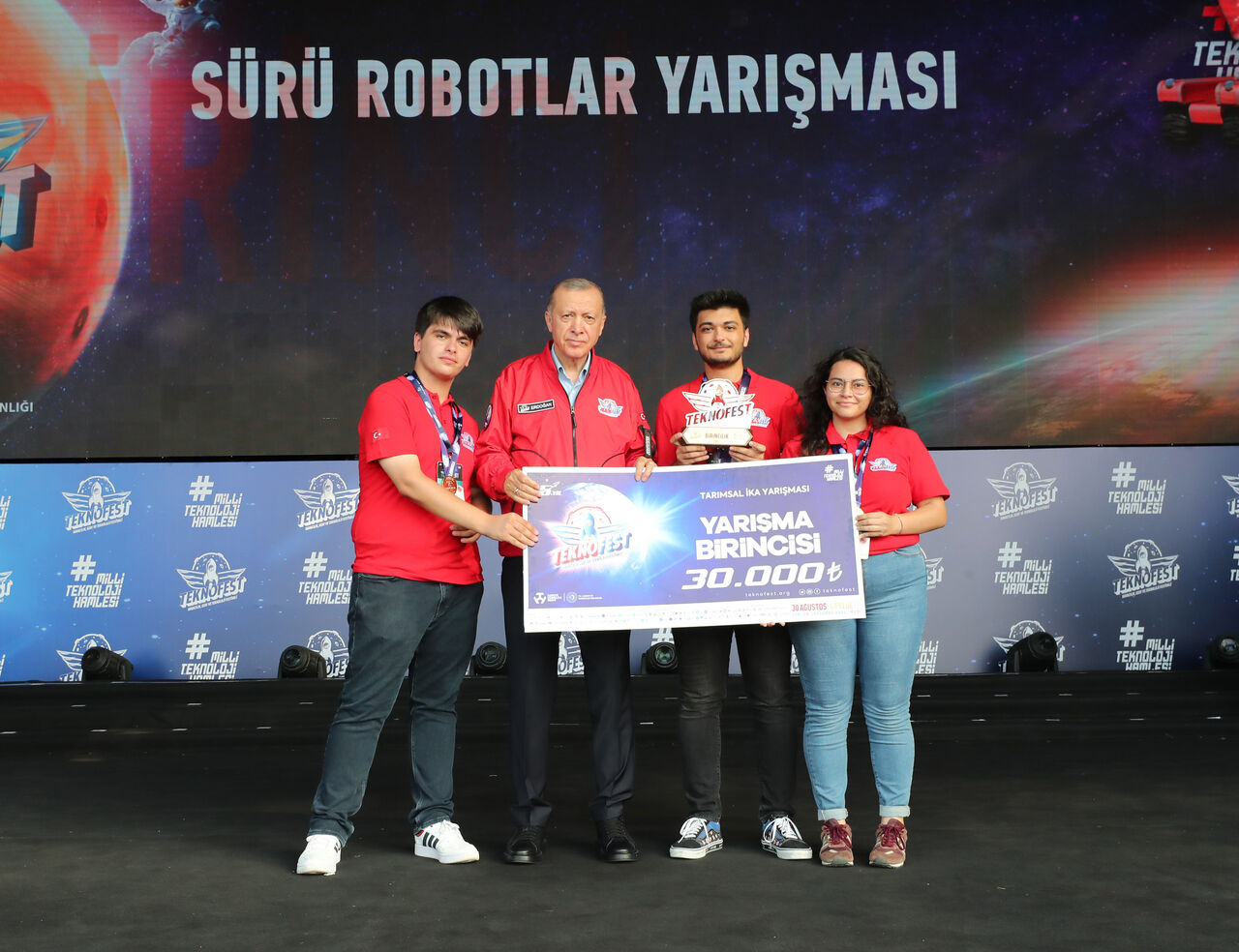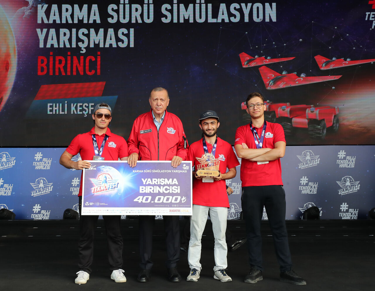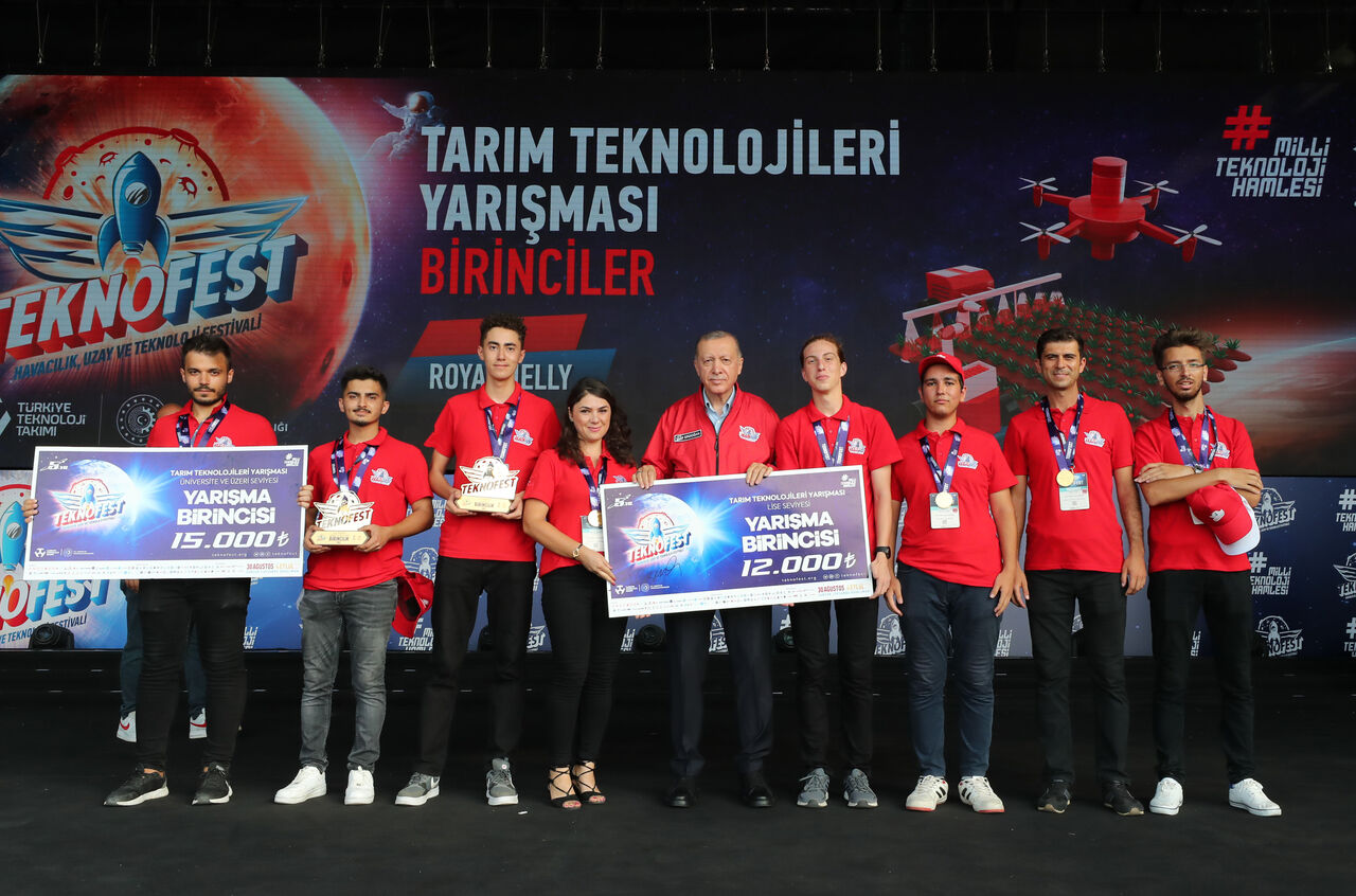 Cumhurbaşkanı Recep Tayyip Erdoğan, Samsun Çarşamba Havalimanı'nda düzenlenen TEKNOFEST KARADENİZ 2022'ye katıldı. Konuşması öncesinde TEKNOFEST’in paydaşları ile hatıra fotoğrafı çektiren Cumhurbaşkanı Erdoğan, daha sonra TEKNOFEST’te ödül almaya hak kazanan takımlara ödüllerini verdi.