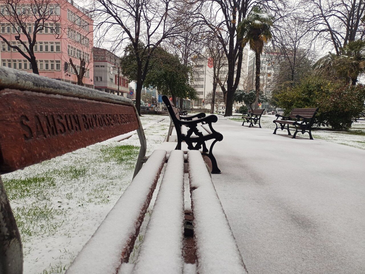 Sabah saatlerinde başlayan kar yağışı merkez ilçeler İlkadım, Atakum, Canik ve Tekkeköy'ün yanı sıra kentin yüksek kesimlerini beyaza bürüdü.