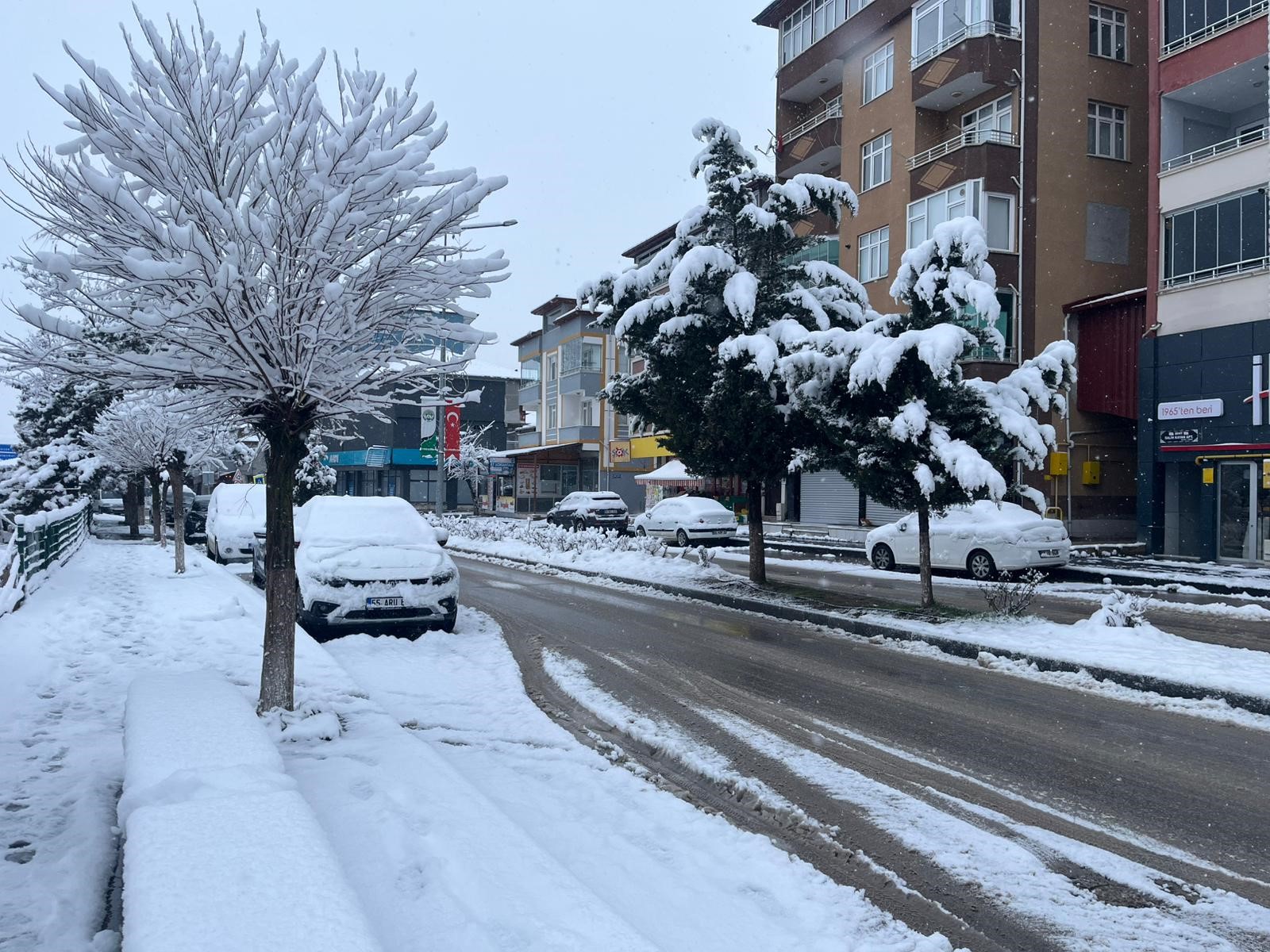 - Evler, araçlar ve yollar kısa sürede beyaz örtüyle kaplandı.