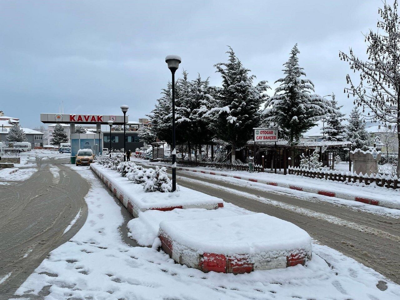 Kavak ilçesinde gece saatlerinde başlayan kar yağışı nedeniyle ilçe beyaz örtüyle kaplandı.