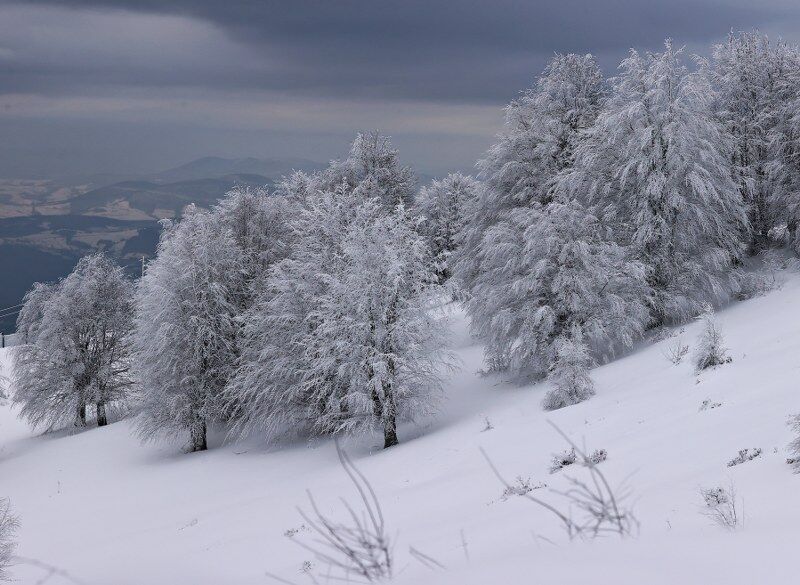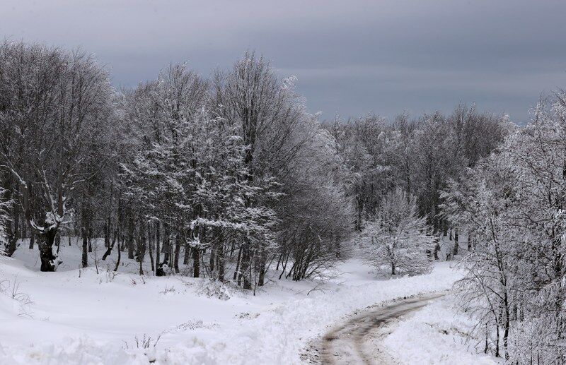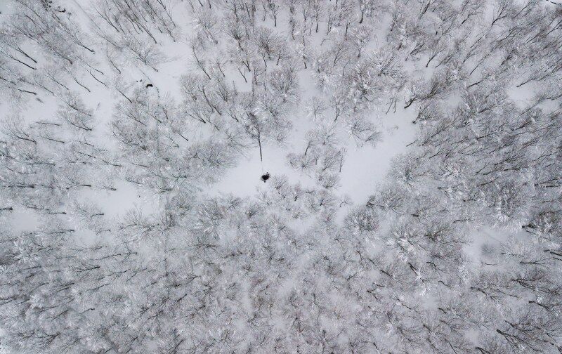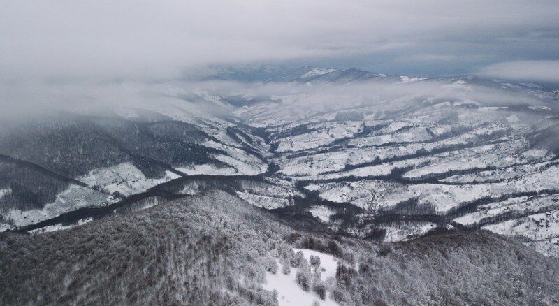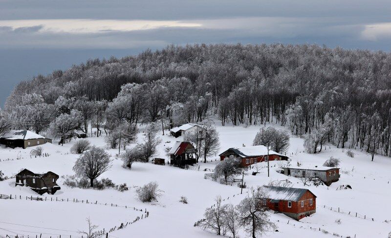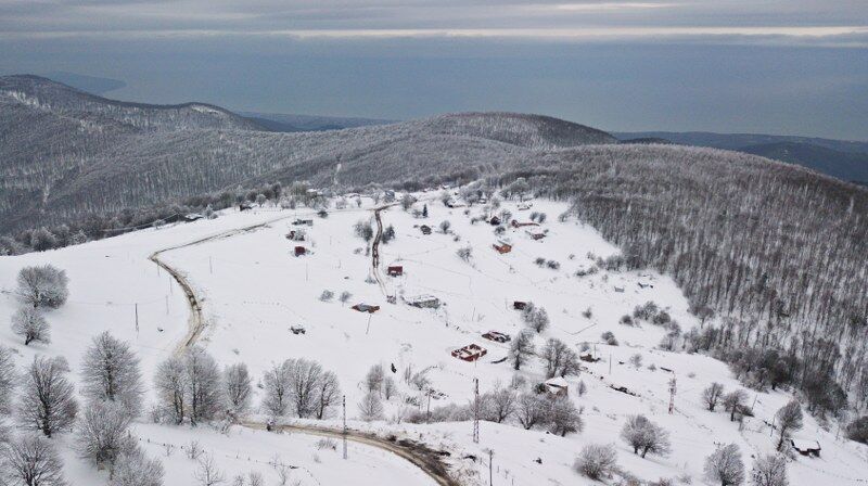 Kar yağışının ardından etkileyici güzelliğe bürünen Kocadağ Yaylası, dronla görüntülendi.