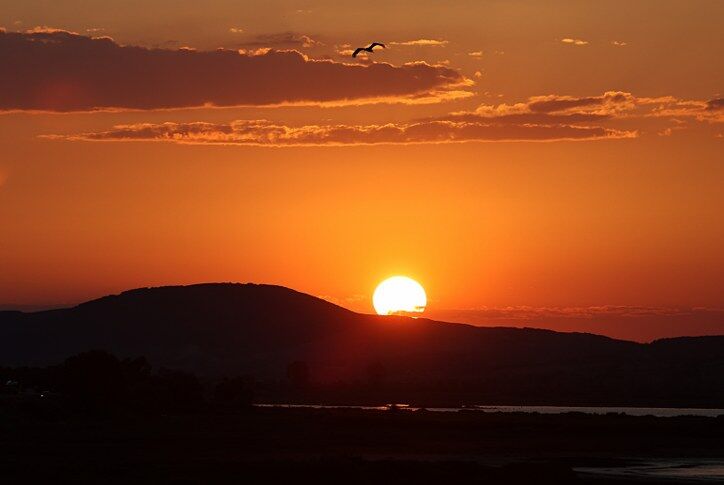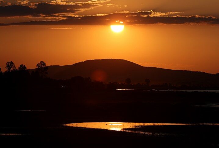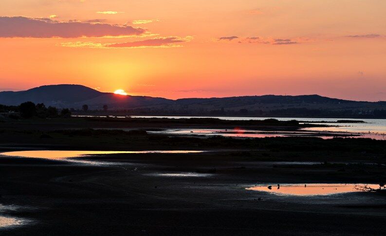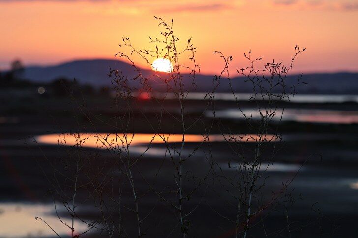 Samsun'da yüzen adacıkları ve endemik balık türleri bulunan Ladik Gölü, akşam saatlerinde gökyüzünde oluşan kızıllıkla güzel görüntü oluşturdu.