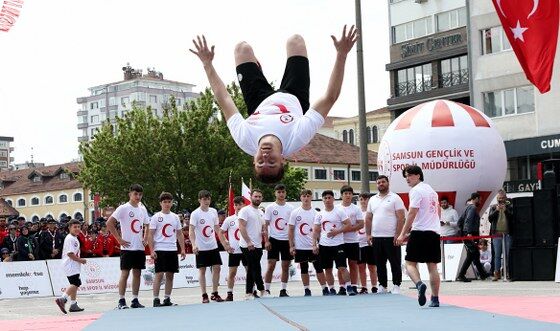 Törende müzik dinletisi ile İl Gençlik ve Spor Müdürlüğü sporcuları tarafından tekvando, jimnastik ve güreş gösterisi gerçekleştirildi.