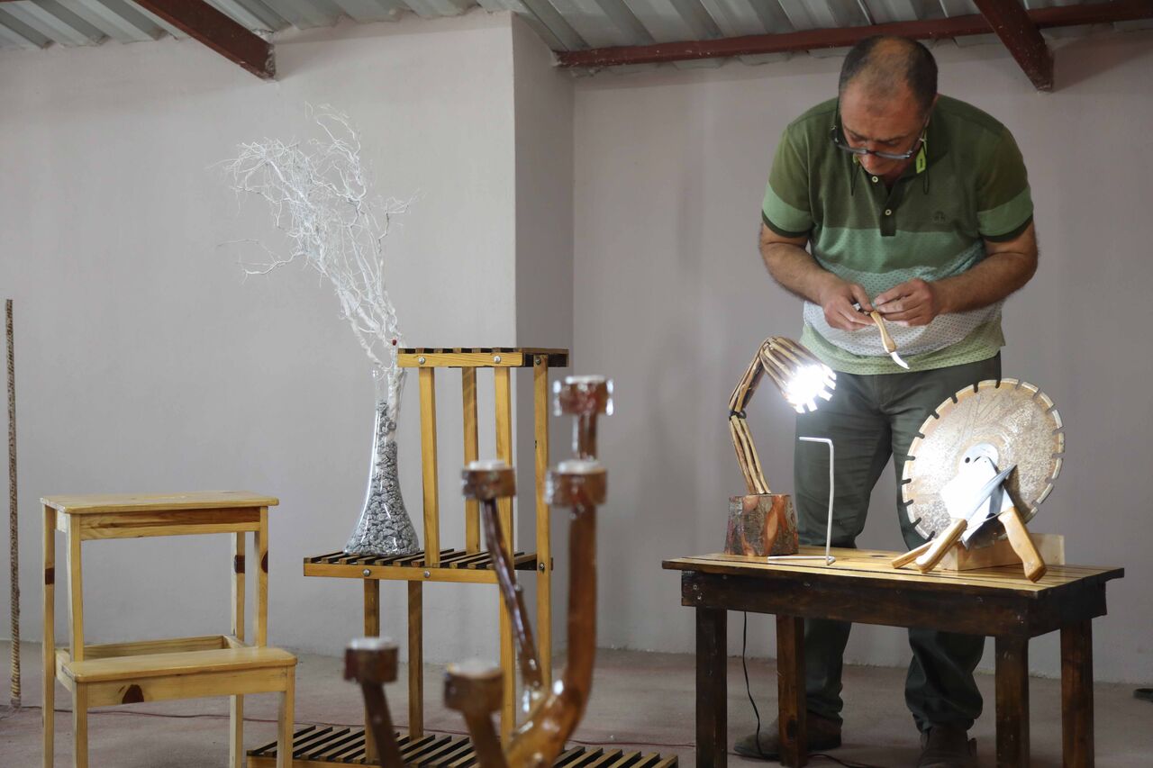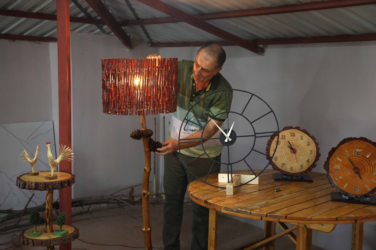 "Metal, tahta gibi ne olursa tüm ürünlerden mutlaka güzel süs eşyası ortaya çıkıyor. Karadeniz Bölgesi ormanlık, fındıklık ve meyve ağaçlı bölge olduğu için her yıl üreticilerimiz ağaçlarını buduyor. Budama zamanlarında bahçe kenarlarına atılan dal parçalarını topluyorum. Bunları biriktiriyorum, sonra tek tek tüm dalları kontrol ederek, 'Ne yapabilirim?' diye düşünüyorum. Gece lambalarını bu atıklardan yapıyorum. Metal atıklardan da bıçak ve satır gibi ürünler yapıyorum. Geçen gün evimde ütü masası bozulmuştu, atılacaktı, ayaklarını kullanmak istedim. Eski çocuk salıncağı ve ütü masasının ayaklarını kullanarak oturaklı ayakkabılık yaptım. Yani elime geçen atık malzemelerin her birinden bir şey çıkartmaya çalışıyorum."