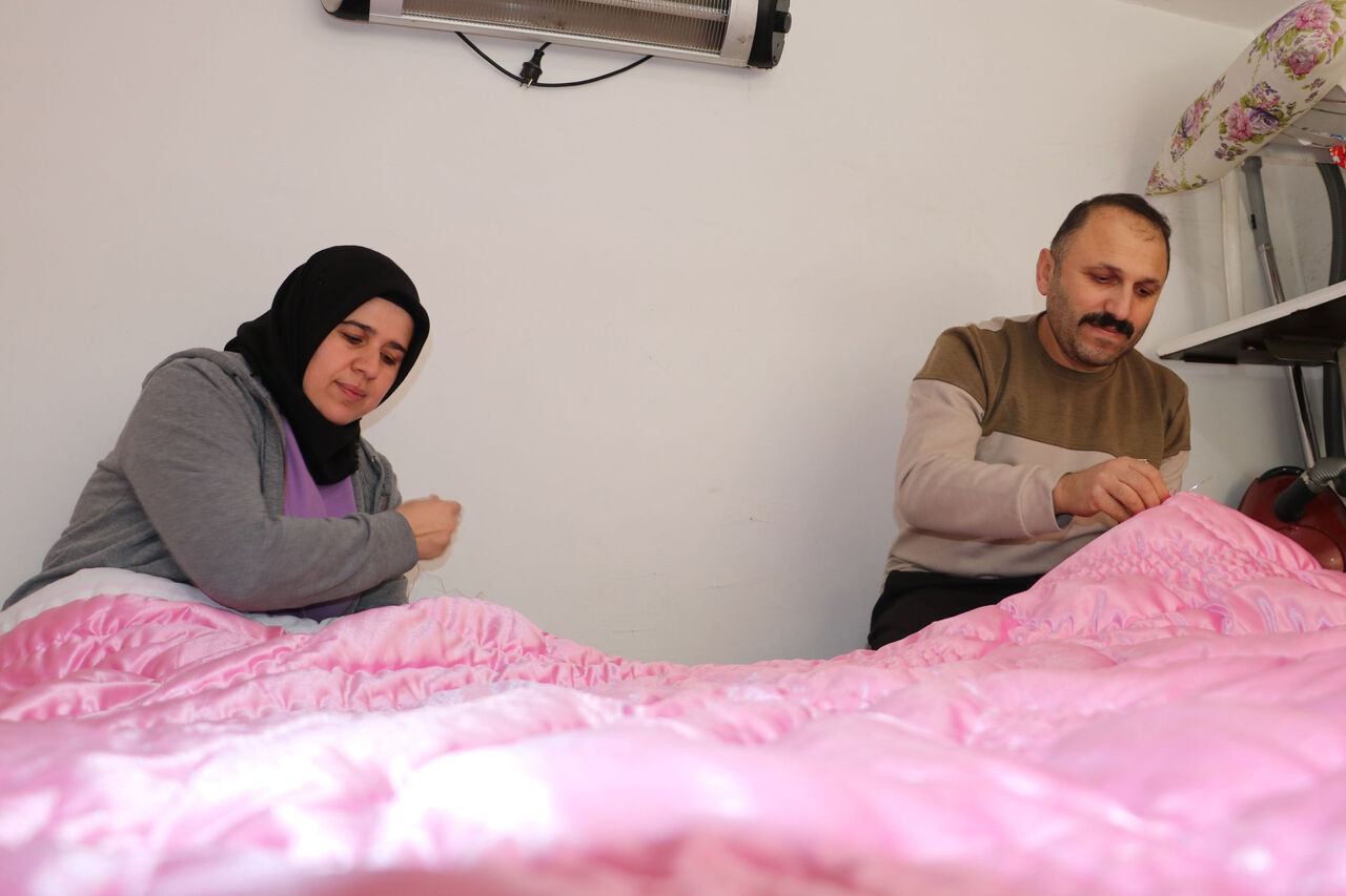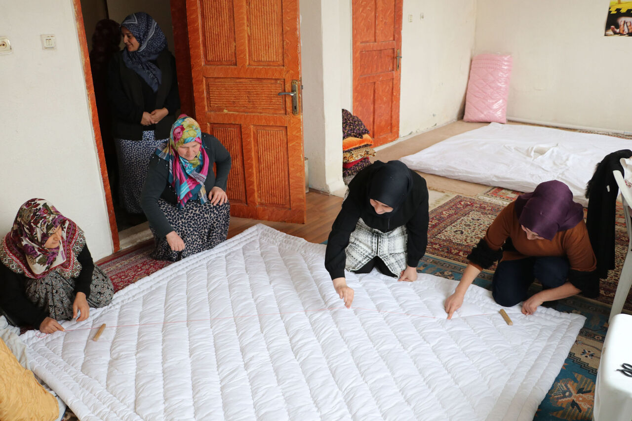 Bunun üzerine ne yapabileceklerini düşündüklerini belirten Demir, "Eşim, 'Yorgan diktirip satalım' dedi. Bir kadın bulduk yorgan diken, bu sefer kazancımız çok az oldu. Ben evde duruyordum. Halk eğitim merkezine gittik ve yorgan dikim kursu açılması için girişimde bulunduk. Sonra yorgan dikimini evde eşime de öğrettim." dedi.