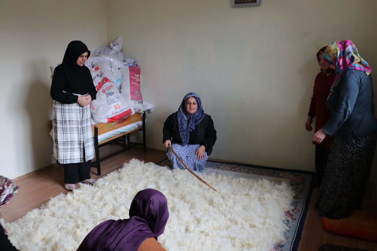 "Halk eğitimi merkezinde kurs açıyorum, yorgancılık mesleğini öğretiyorum. Kurs boyunca mesleği iyi öğrenen kursiyerlerimize sipariş üzerine iş veriyorum. Bugüne kadar 100'e yakın kursiyer yetiştirdim, çoğu çalışıyor. Evlenip gidenler var İstanbul, Ankara gibi büyük kentlere. Onlar da oralarda mesleklerini icra ediyor."