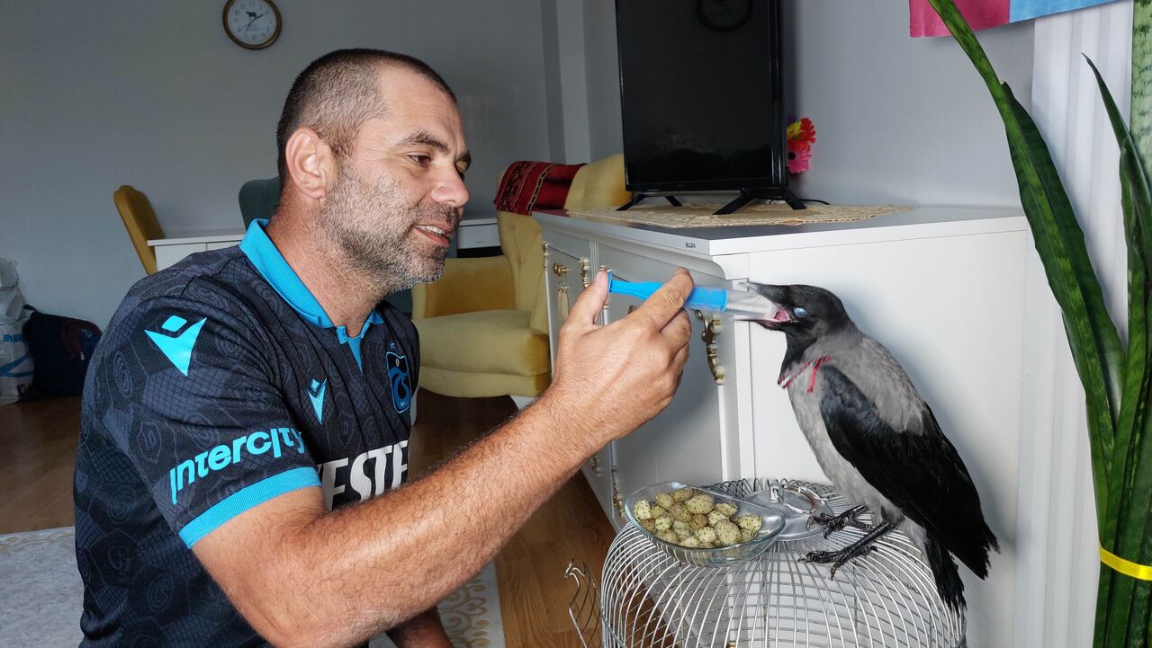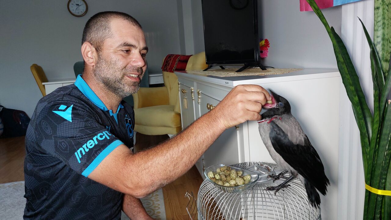 Samsun'un İlkadım ilçesi Fevziçakmak Mahallesi'nde ikamet eden 3 çocuk babası Savaş Küçük (46), 15 gün önce bulduğu karga yavrusunu evine götürerek beslemeye başladı. Evin maskotu olan karga halinden oldukça memnun. Kargayı evlatları gibi bakan aile onu elleriyle besliyor.