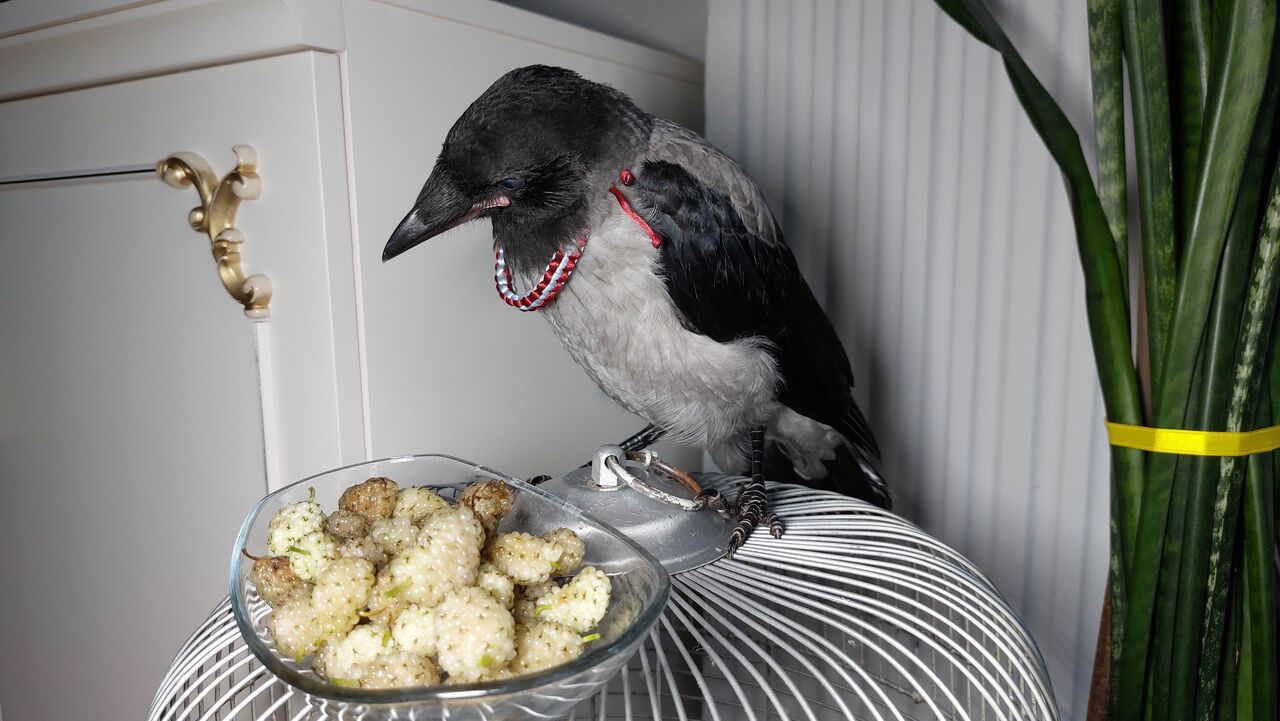 Kargayı arazide bulup evine götüren Savaş Küçük, "İş yerinde arazide çalışırken köpeğimiz bir sesle birlikte kaçmaya başladı. Bir baktım karga. Orada köpeği korkuttu. Köpeğin korkmasıyla biz de korktuk. Şu an gayet iyi besleniyor. Hatta doymak nedir bilmiyor. Her şeyi yiyor. Yemek seçmiyor. Özel kedi maması, köpek maması da aldım vitaminden eksik kalmasın diye. Ayrıca dutu çok seviyor. Dut veriyorum. Bisküvi, patates her şeyi yiyor. Bize alıştı. Yaklaşık 35-40 günlük. Büyük ihtimalle yakında uçacak. İstediği zaman gider gelir. Eskiler söylerdi 'karga bakıldığı zaman gitmez, eve gelir' diye. Bakalım göreceğiz" dedi.