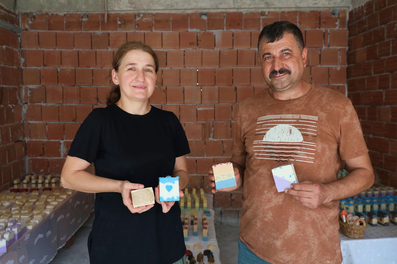 Arıcılıkla uğraşan ve hobi olarak başladıkları sabun yapımını ilerleten çift, tamamen geleneksel ve doğal tekniklerle 13 çeşit sabun yapıyor. Çiftin yaptığı sabunlar arasında en çok merak edilen ise hamsi yağından ürettikleri sabunlar oluyor.