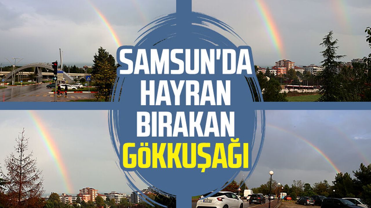 Samsun'un Atakum ilçesinde, akşam saatlerinde etkili olan yağmurun ardından beliren gökkuşağı, renkli görüntüler oluşturdu.