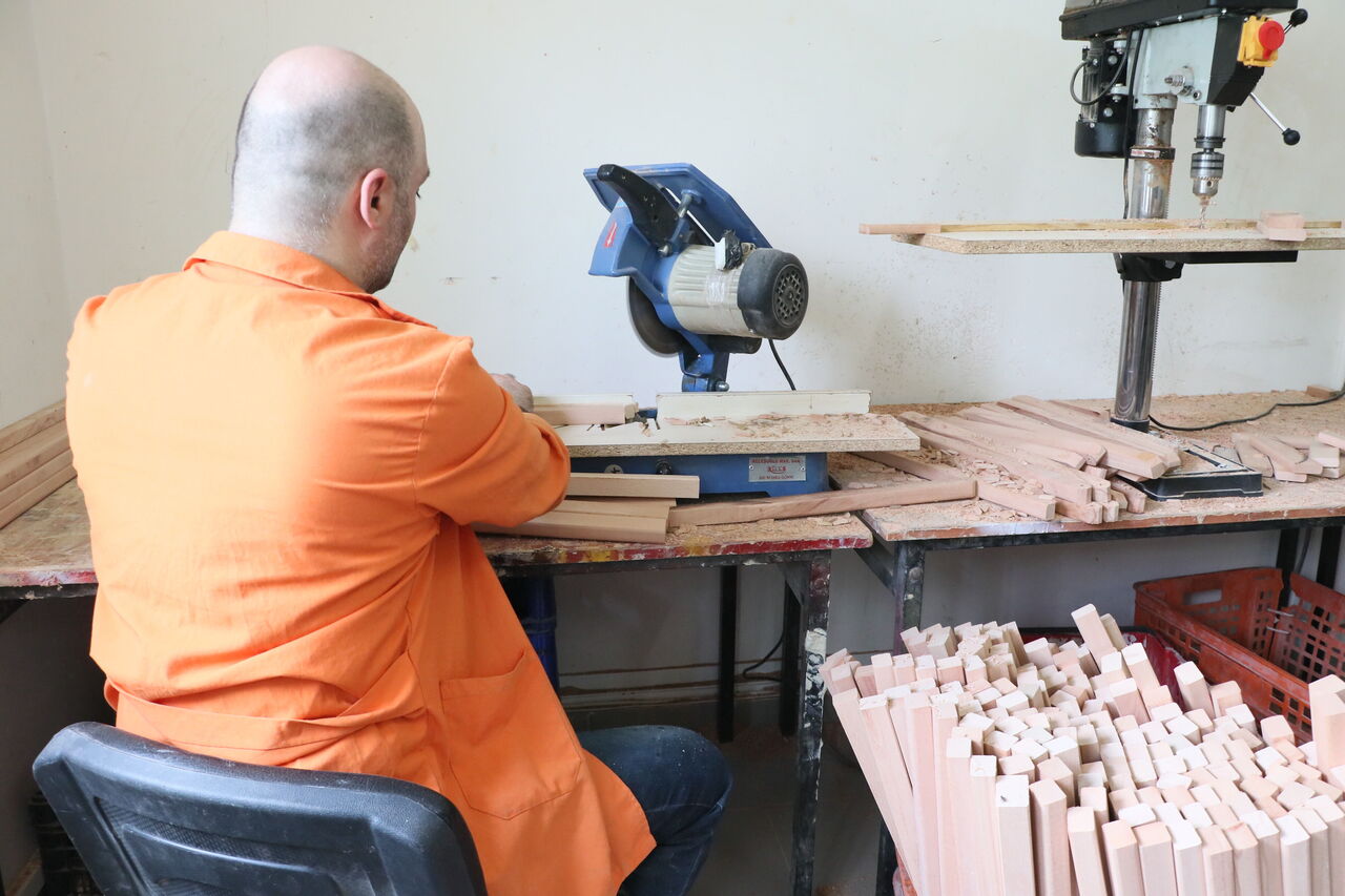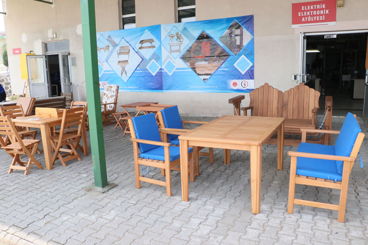 İnfaz koruma memuru ve atölye sorumlusu Mustafa Taşkın ise bahçe ve balkon takımları, piknik masası, katlanır tabure, ahşap salıncak gibi ürün yelpazesine sahip olduklarını, bunun yanı sıra özel sipariş aldıklarını söyledi.