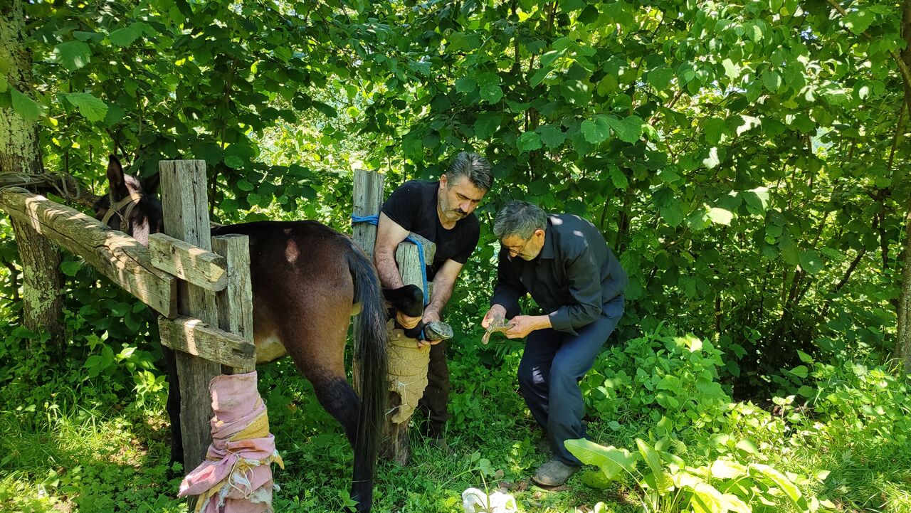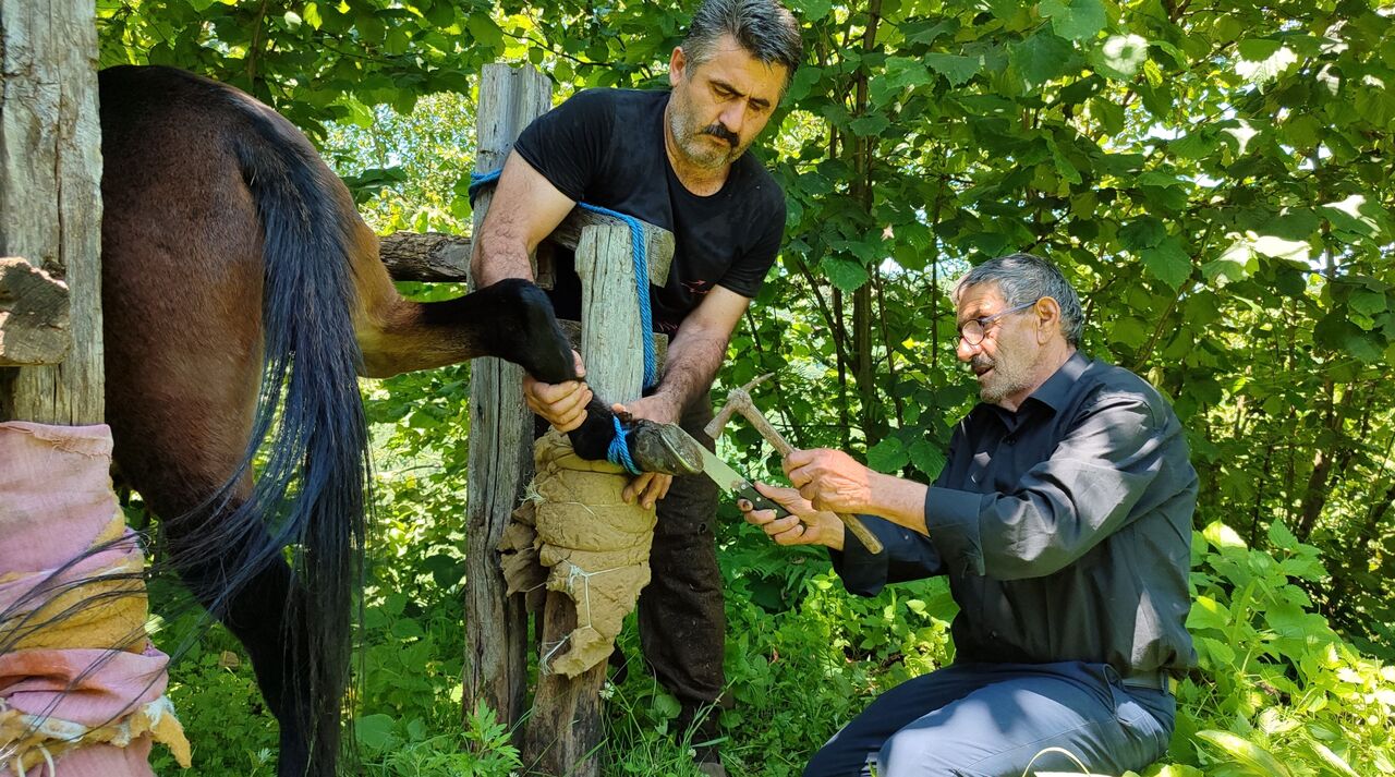 Evinin bahçesinde oluşturduğu düzenekte kendisine getirilen atların nallarını değiştiren Kaya, hayvanların ayaklarının bakımını da yapıyor.