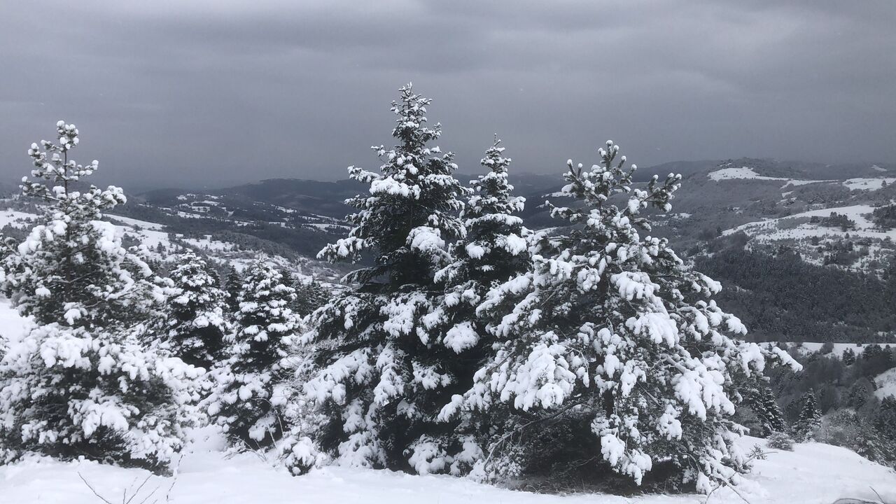 Samsun'un Alaçam ilçesinde bulunan Kızlan Yaylası, yağan karla birlikte beyaz gelinliğini giydi.