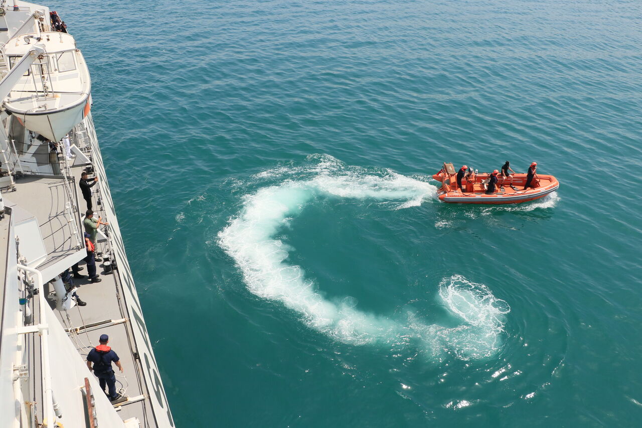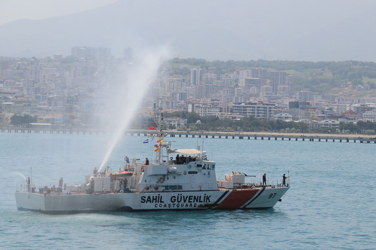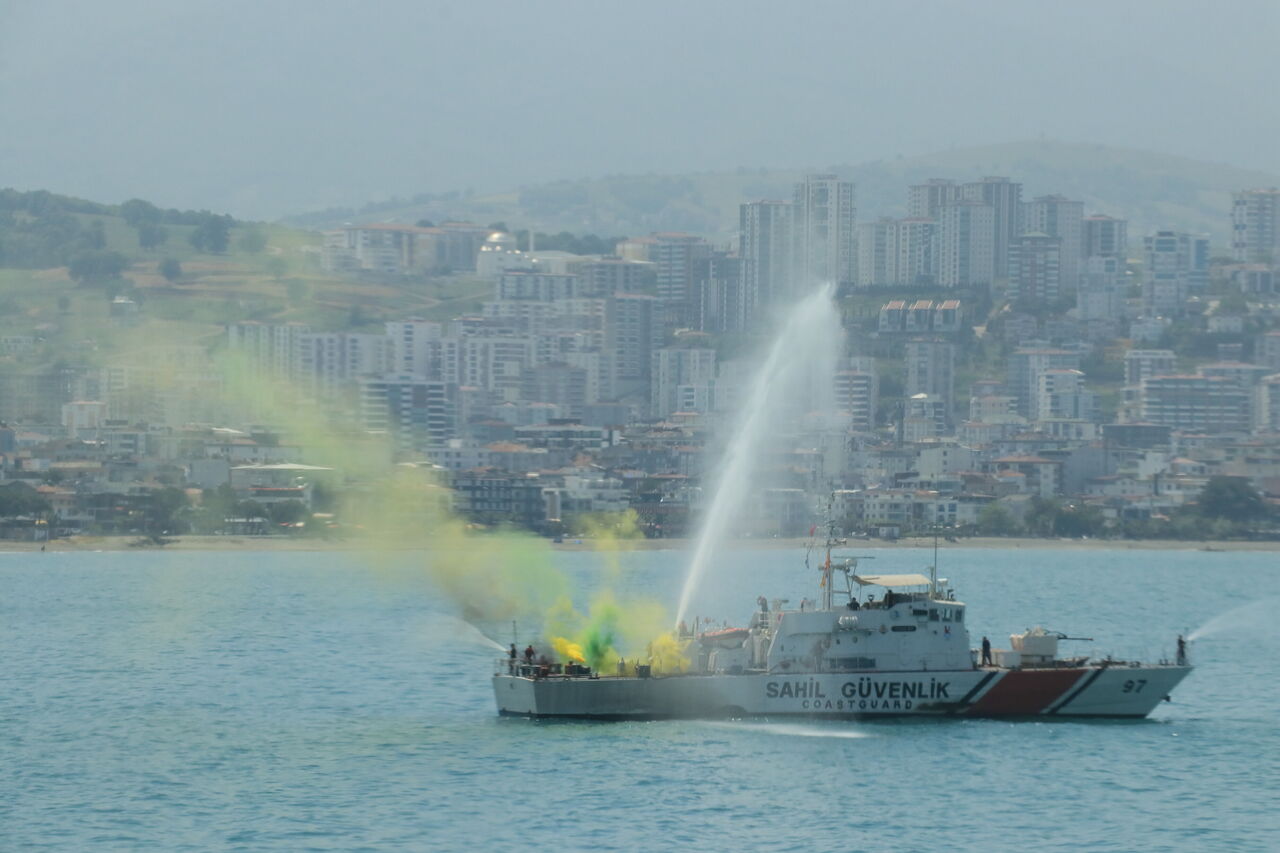 Denizdeki kazazedelerin kurtarılarak yangına müdahale edilmesi heyecanla izlendi. Tatbikatı TCSG DOST 701 gemisinden takip eden Samsun Valisi Zülkif Dağlı, kortej geçişi yapan ekipleri selamladı.