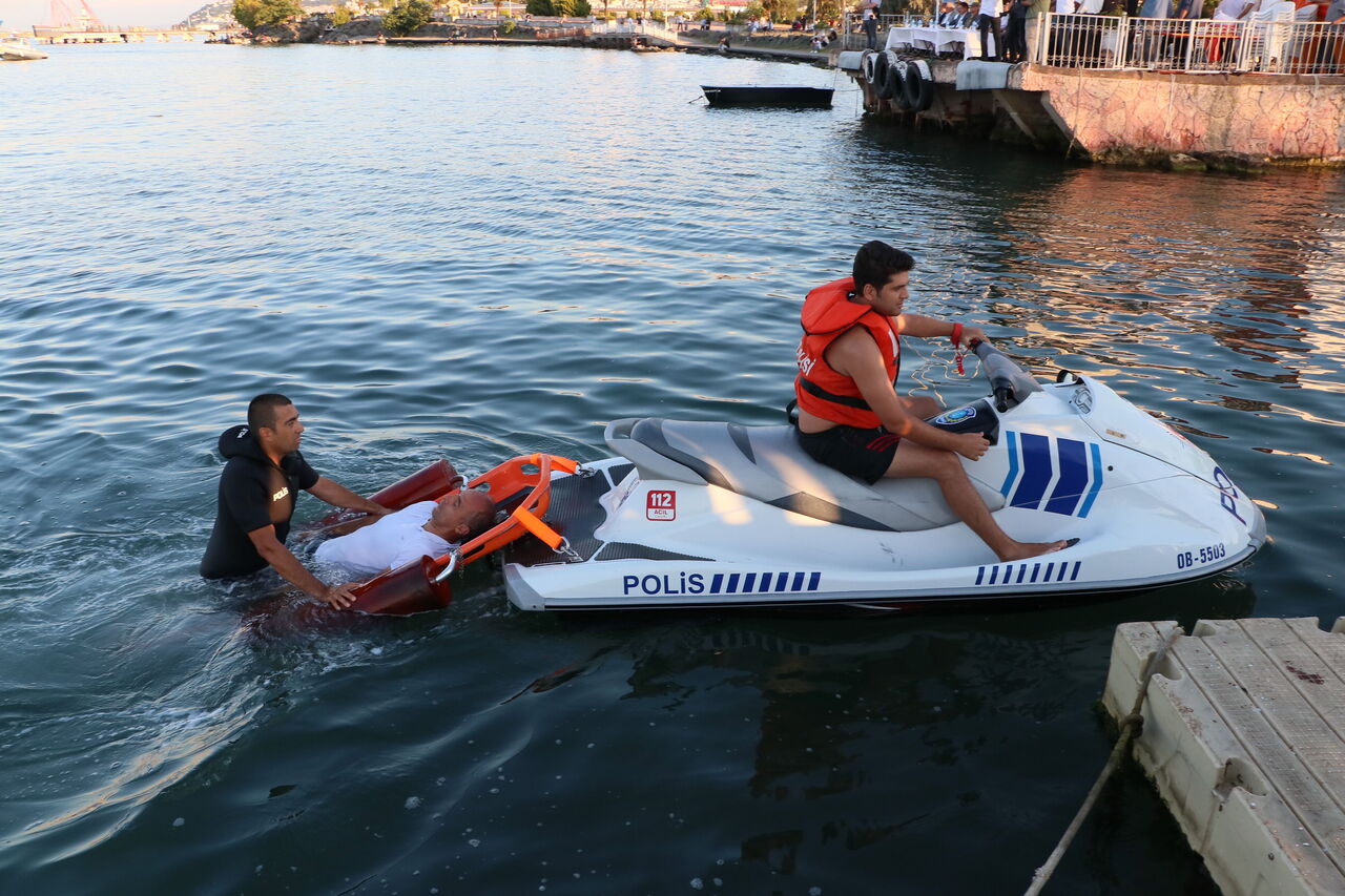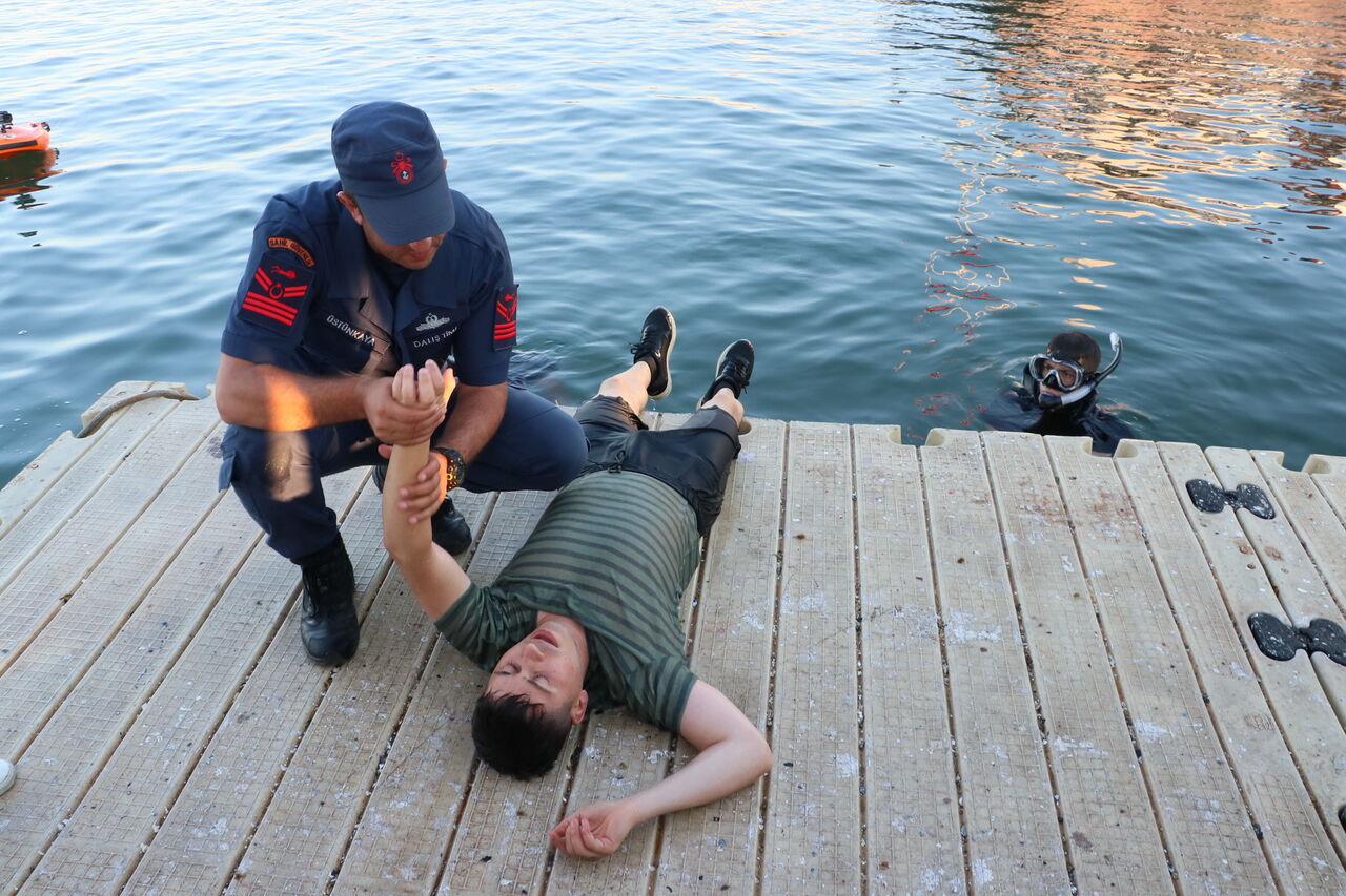 Kazazede, can simidiyle bir süre taşındıktan sonra olay yerine gelen bota alınarak burada yapılan müdahalenin ardından kıyıya getirildi.