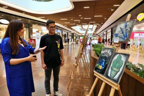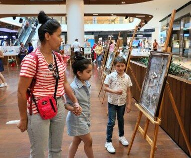 Öğretmenlerin yaptığı eserler, kentteki bir alışveriş merkezinde vatandaşların beğenisine sunuldu.