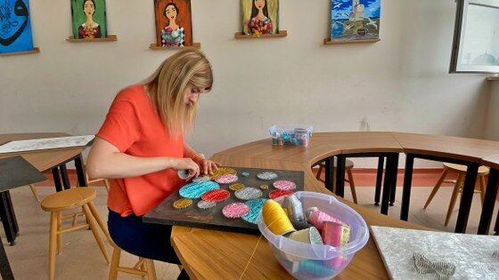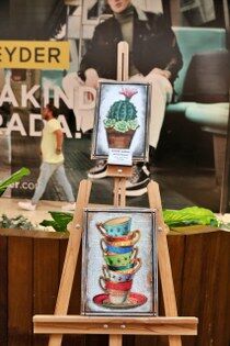 "Çoğu öğretmen arkadaşımız, atölyeyi bırakıp çıkmak istemedi. Atık malzemeler de kullandık, tuval haline getirdik. 23 yıllık görsel sanatlar öğretmeniyim, bu benim hayalimdi. Tekkeköy İmam Hatip Ortaokulundaki arkadaşlarıma nasip oldu. Sanatın insanların hayatlarının bir evresinde olması gerektiğini düşünenlerdenim. Matematiğin içine bile sanatı sokup görseli yorumlamanın ne olduğunu anlatmaya çalışıyoruz."