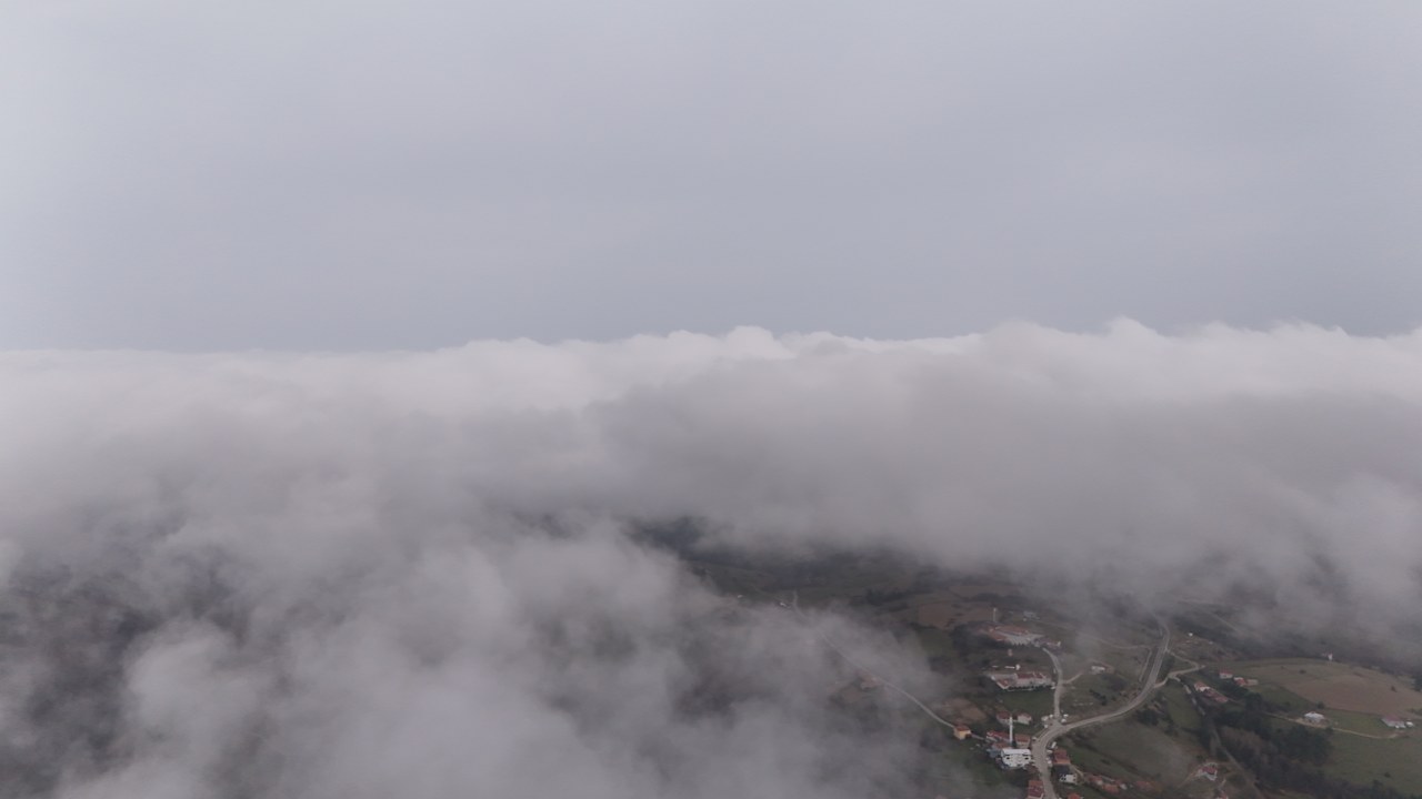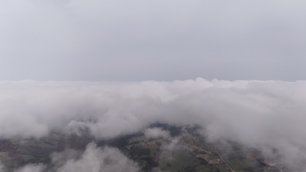 Gündüz vaktinde oluşan "sis denizi", 1650 rakımlı dağın manzaralarıyla birleşince eşsiz görüntüler ortaya çıktı.