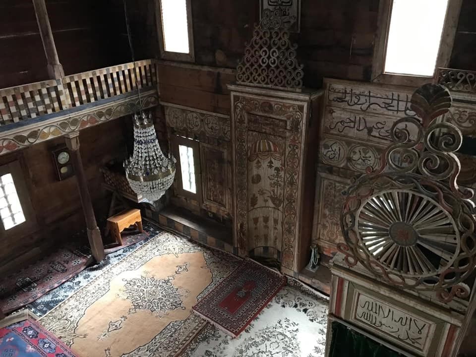 Harim içindeki mihrap duvarında, mihrabın üstünde tavana yakın bir konumda, müsenna tarzında yazılmış; güzel istiflenmiş bir kitabe mevcuttur. Kitabede "Maşallah Nakkaş Said 1293" ifadesi okunmaktadır. Bu kitabeden anlaşıldığına göre binanın süslemeleri Nakkaş Said tarafından Hicri 1293 (1876) yılında yapılmıştır.