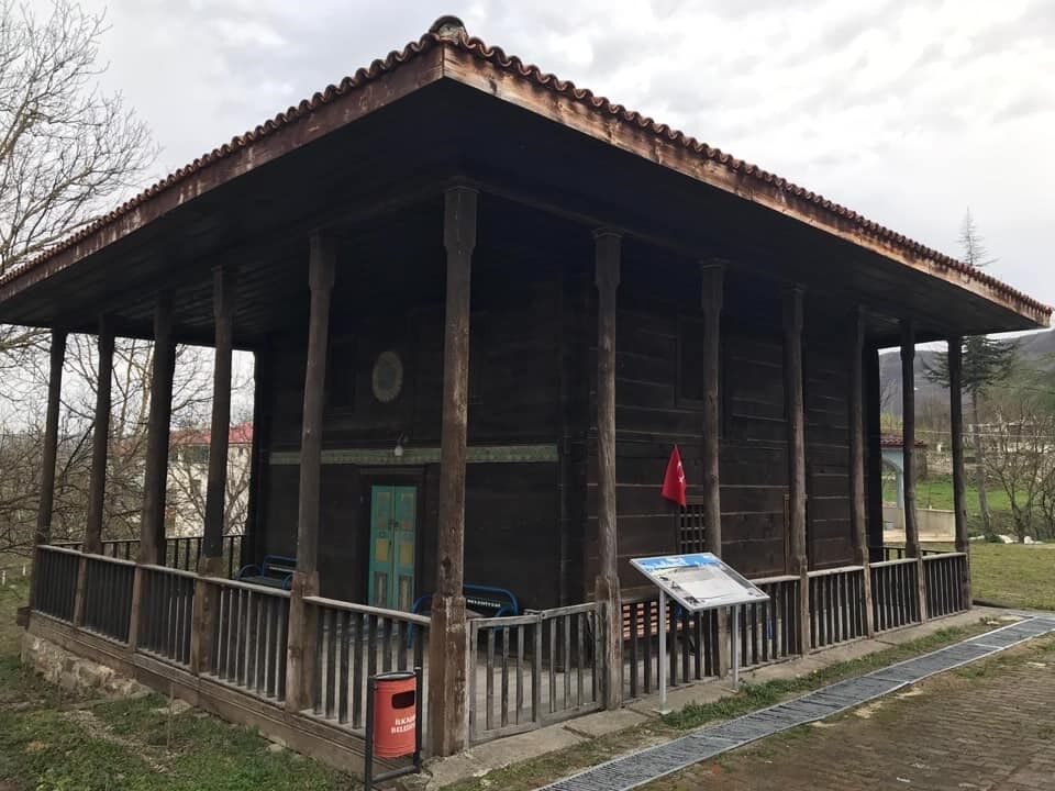 Caminin ilk kurulduğunda şimdiki yerinde olmadığı, köyün epey uzağında, dere boyunda bir mezarlık içinde inşa edildiği bilinmektedir. Daha sonra sökülerek bugünkü yerine nakledilmiştir.