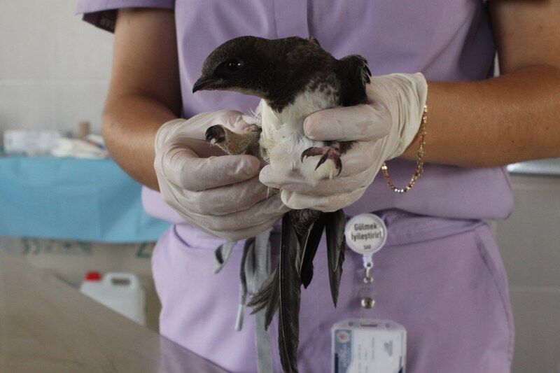 Kliniğe getirilen yaralı kuşun yaklaşık 3 haftalık olduğunu ve eklem bölgesinde kırık bulunduğunu anlatan İsfendiyaroğlu, "Ayakları kısa olduğu için ak karınlı ebabiller çok fazla havalanamayabiliyor. Bu nedenle bu yavrumuz bacağı kırık ve beslenemediği için kliniğimize geldi. Gerekli beslemeleri yaptık, operasyon ve bandaj işlemlerini gerçekleştirdik. Yaklaşık 15 gündür bizimle ve bir hafta daha kalacak. Şu anda genel durumu iyi, iyileştiğinde onu tekrar doğaya bırakacağız." diye konuştu.