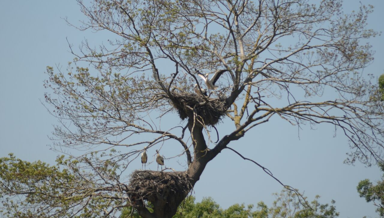 Doğanca Mahallesi mevkiinde ağaçlarda oluşturdukları yuvalarına dişilerinden önce gelen erkek leylekler, yuvalarını tamir ettikten sonra nisan ayında dişi leyleklerin gelmesiyle çiftleşerek yavrularını büyütüyor.