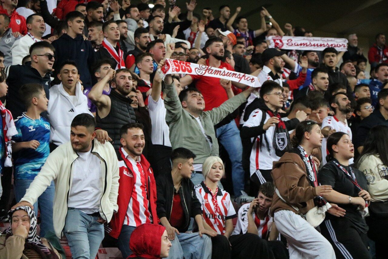 Yeni 19 Mayıs Stadyumu'nda oynanan zorlu mücadelede Samsunspor taraftarı takımlarını 90 dakika boyunca coşkuyla destekleyerek tribün şovuna imza attı. Stadyumu dolduran Kırmızı-Beyazlı camia, takımına büyük moral verdi.