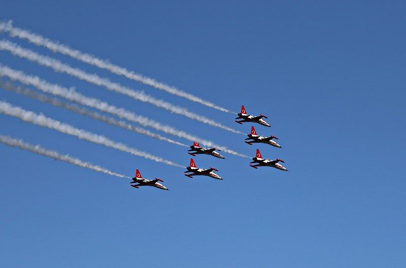 Türk Yıldızları Basın Halkla İlişkiler Biriminden alınan bilgiye göre, Türk Yıldızları Akrobasi Timi, gökyüzüne 18 kilometre uzunluğunda ve 12 kilometre genişliğinde dev Türk bayrağı çizdi. 216 milyon metrekarelik alanıyla bu bayrak, "dünyanın en büyük gökyüzü bayrağı" oldu.