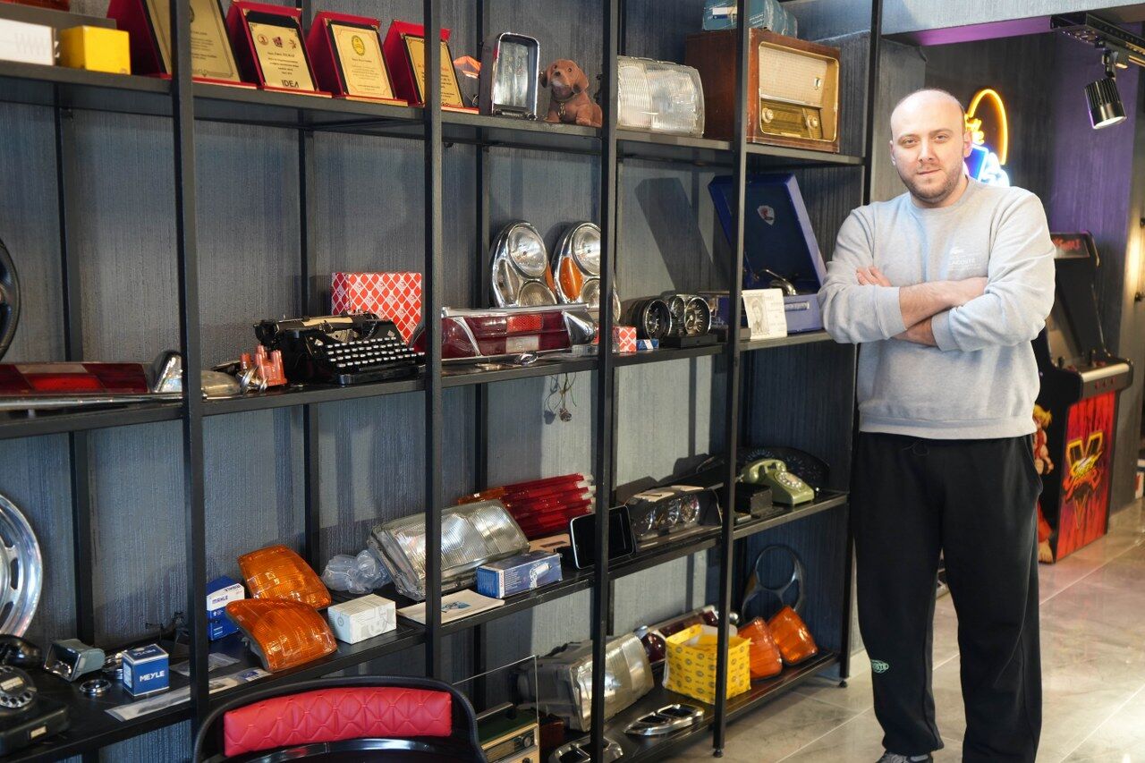 Yılmaz’ın klasik otomobil garajında otomobillerin yanı sıra Mercedes parçalarından oluşan mini müze de bulunuyor.