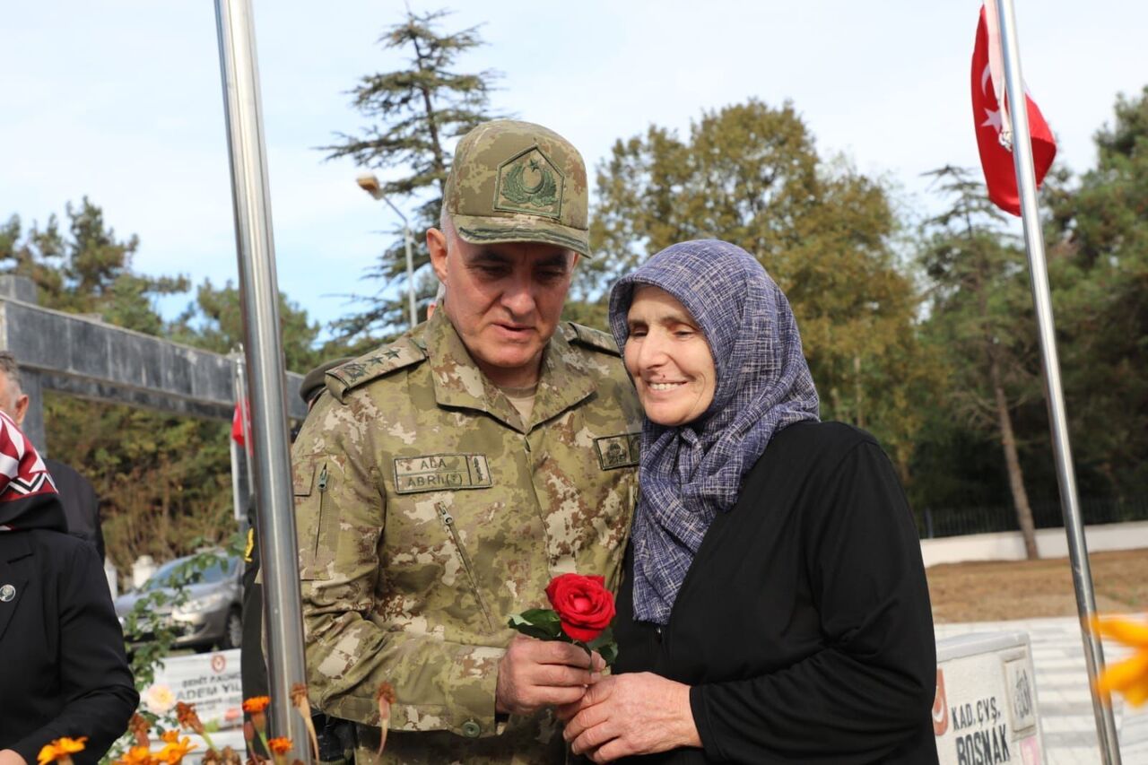 Samsun Garnizon Komutanı Gazi Tümgeneral Davut Alâ da sosyal medya hesaplarından yaptığı paylaşımda, “Anne işte, cumartesi yok, pazar yok, varsa yoksa şehit oğlu. Diğer oğlunu da almış gelmiş şehitliğe, elini öptük, duasını aldık. Evine araba ile bıraktırdım. Aldığım duanın haddi hesabı yok” ifadelerine yer verdi.
