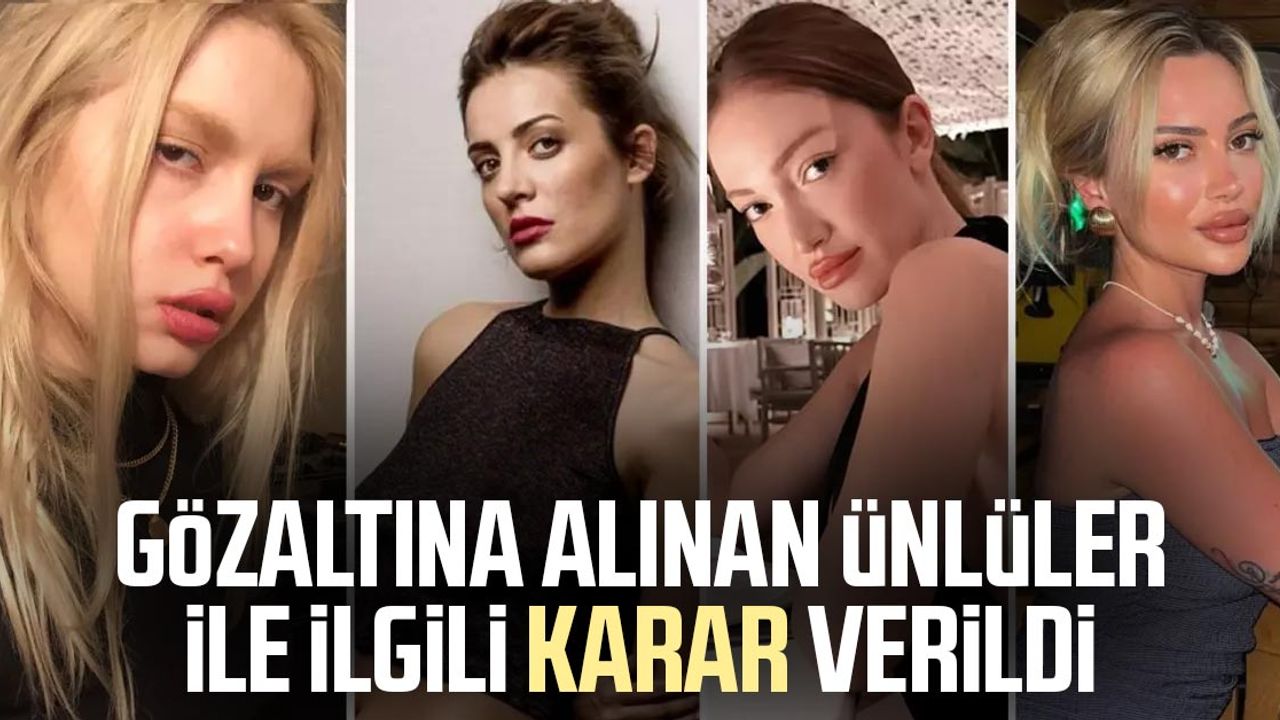 İstanbul Cumhuriyet Başsavcılığı tarafından yürütülen uyuşturucu soruşturması kapsamında gözaltına alınan ünlü isimler hakkında karar çıktı. Soruşturma çerçevesinde gözaltına alınan Aleyna Tilki, İrem Sak, Danla Bilic ve Mümine Senna Yıldız, işlemlerinin ardından serbest bırakıldı.