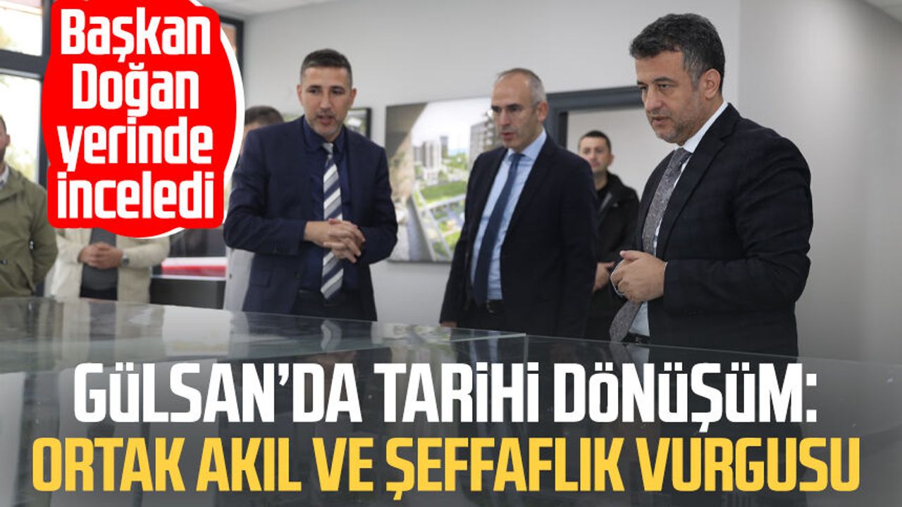 Samsun Büyükşehir Belediye Başkanı Halit Doğan, Gülsan bölgesindeki Kentsel Dönüşüm Ofisi’ni yerinde inceleyerek yürütülen çalışmalara ilişkin bilgi aldı. Başkan Doğan, dönüşüm sürecinde halkla birlikte hareket ettiklerini vurgulayarak, “Kentsel dönüşüm sürecimizi ortak akılla, şeffaflıkla ve hemşehrilerimizle el ele yürüterek gerçekleştiriyoruz” dedi.