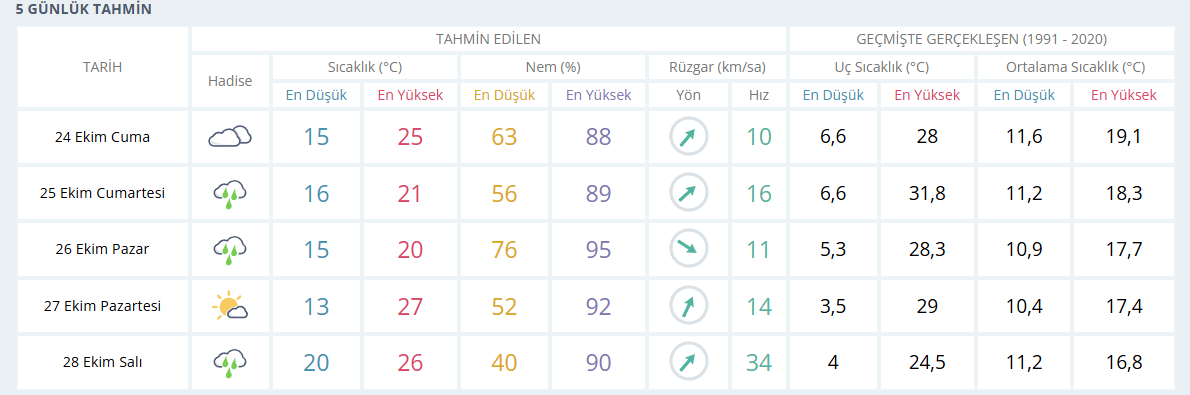 Yeni haftayla birlikte yağış yerini güneşe bırakıyor. Pazartesi günü az bulutlu ve 27 dereceye kadar çıkan sıcaklıklar görülürken, Salı günü yeniden sağanak yağış bekleniyor. Salı günü hava 20 ila 26 derece arasında değişecek.