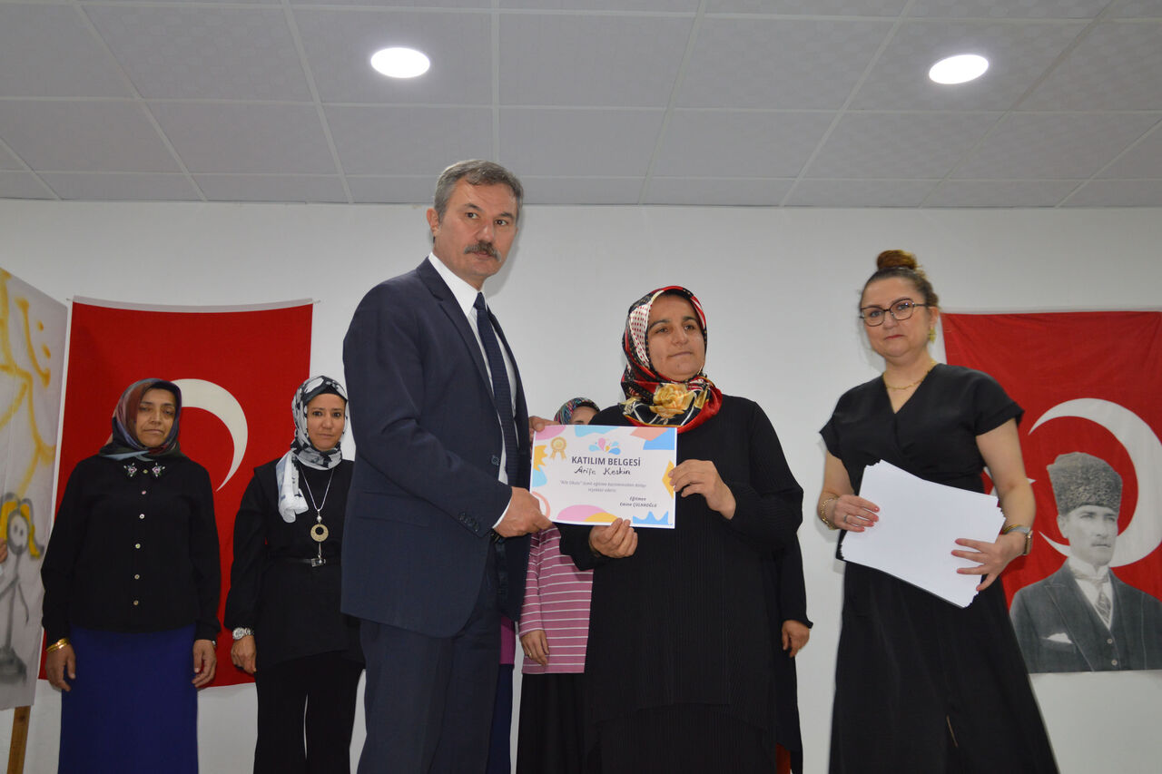 Gösterilerin ardından Havza Milli Eğitim Müdürü Ertuğ, okulda açılan Aile Okulu Kursuna katılan velilere ve sahnede gösteri yapan veli ile öğrencilere katılım belgelerini takdim etti.