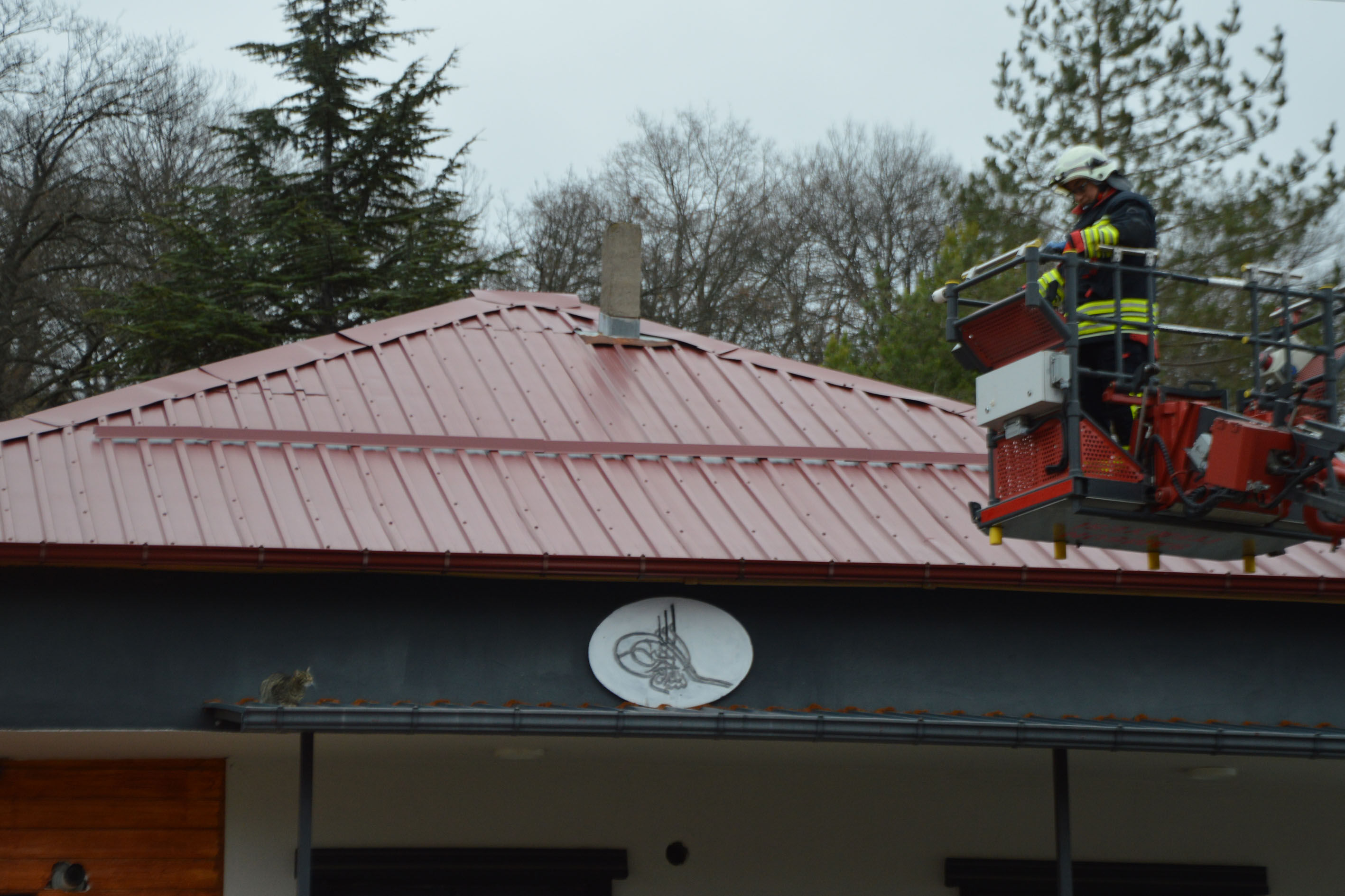 Olay yerine ulaşan ekipler, kediyi kurtarmak için çalışma başlattı. Merdiven yardımıyla çatıya çıkan itfaiye ekipleri, mahsur kalan kediyi bulunduğu yerden aldı.