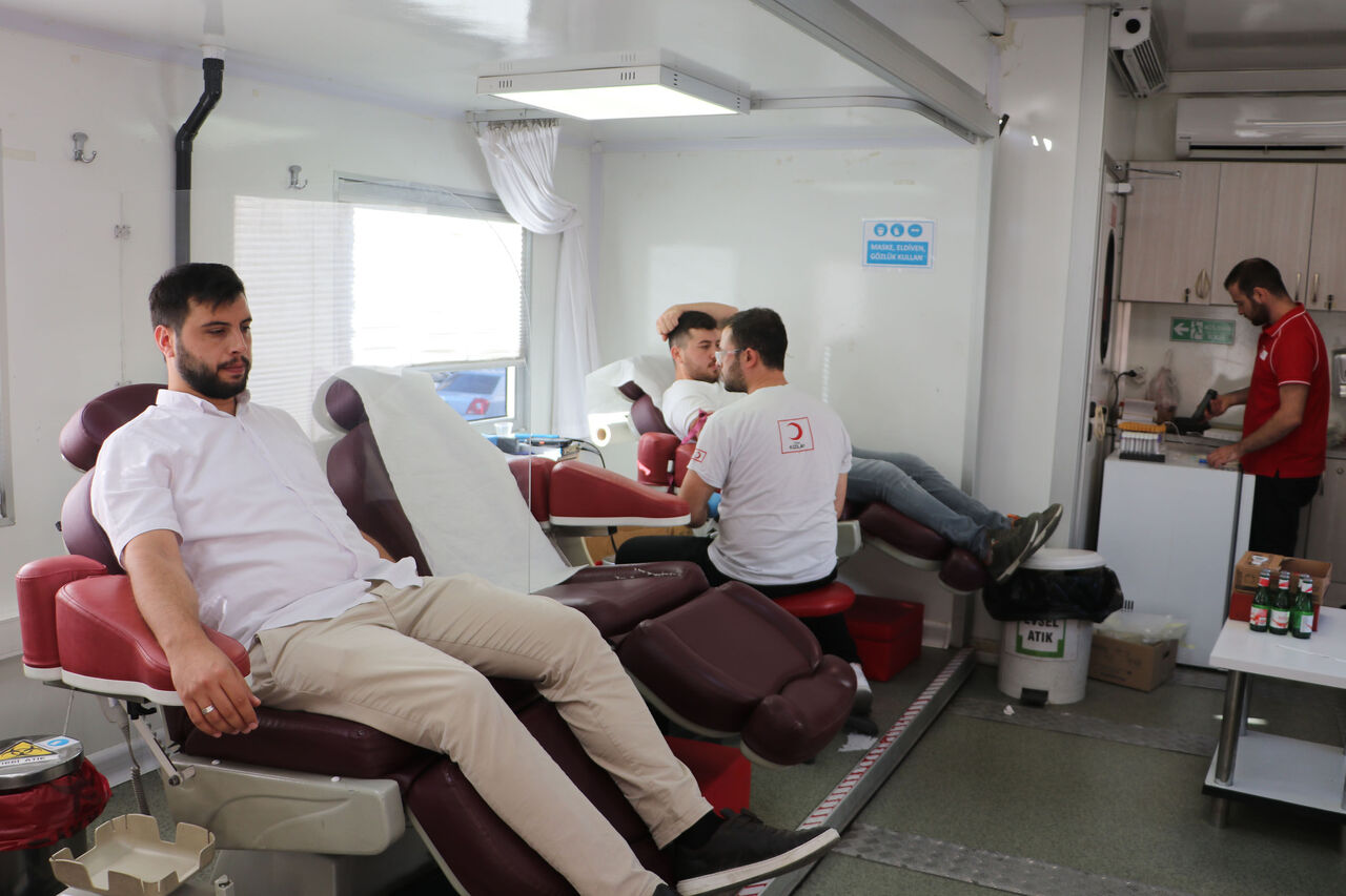 Türk Kızılay tarafından yürütülen Güvenli Kan Temini Projesi kapsamında kan ihtiyacını karşılamak amacıyla Mehmetçik Meydanı'nda kan bağışı aracında kan bağışları alındı.