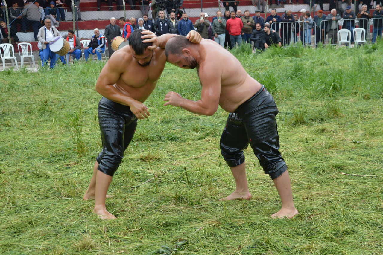 Güreşlere katılan pehlivanlar, dereceye girebilmek için kıyasıya mücadele etti.