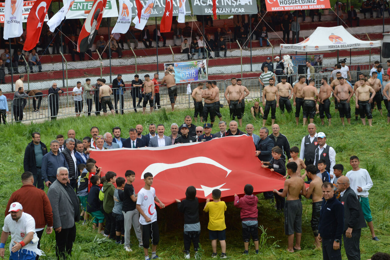 Konuşmanın ardından Güreş Ağası Yahya Ayan'ın eşliğinde Havza Kaymakamı Mustafa Ayvat, Havza Belediye Başkanı Murat İkiz ve güreş ağası adayları güreş alanında tur attı. Ayan ağalık koçunu ise belediye çalışanlarına bağışladı.