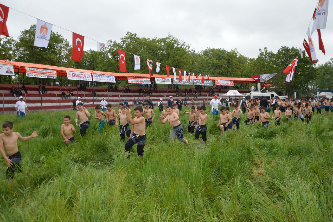 Güreşlerde farklı kategoride yaklaşık 200 pehlivan er meydanına çıktı.