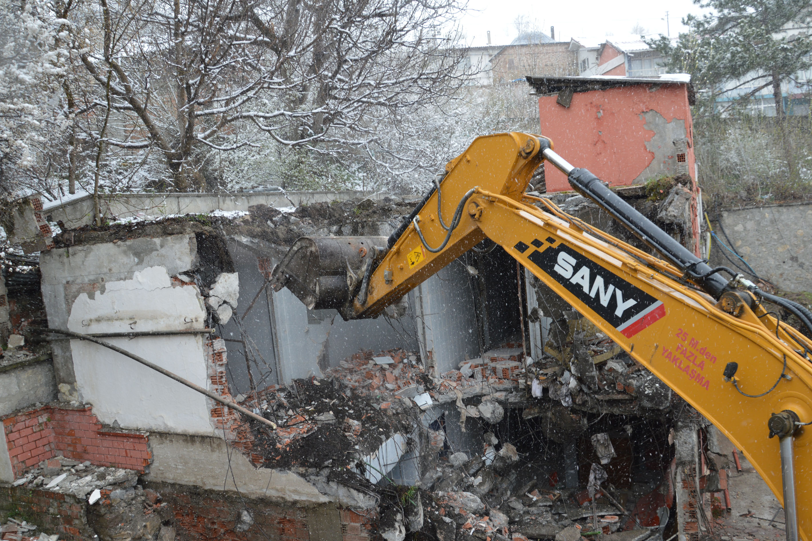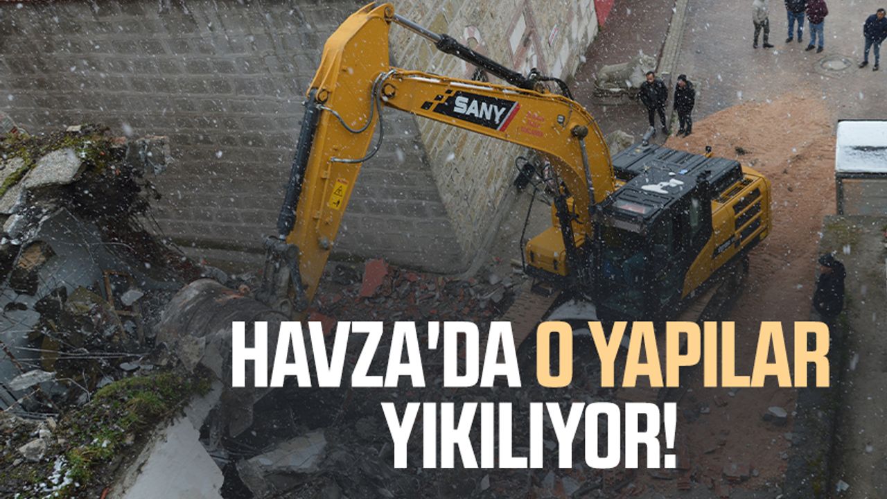 Hakkında yıkım kararı alınan kaçak iş yeri yasal işlemleri tamamlanmasının ardından Havza Belediyesine bağlı ekiplerce iş makinesi ile yıkıldı.