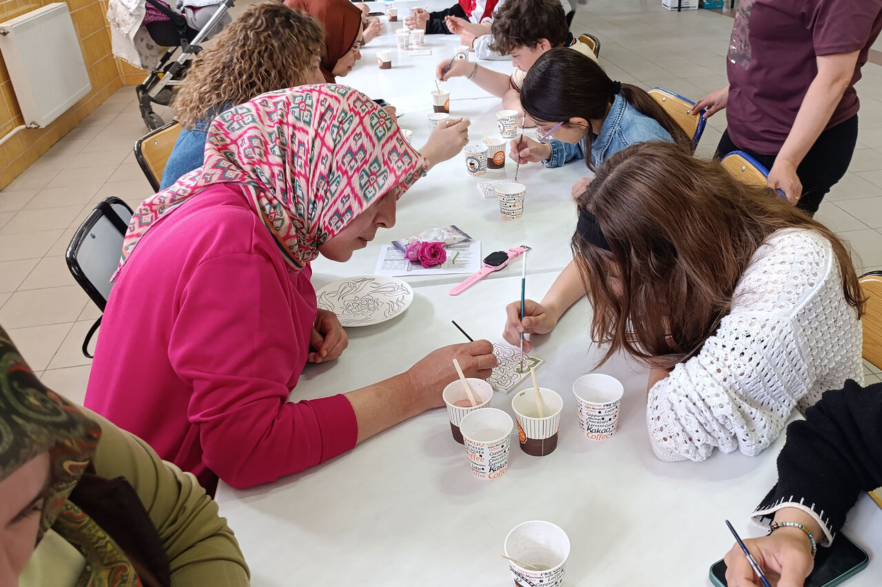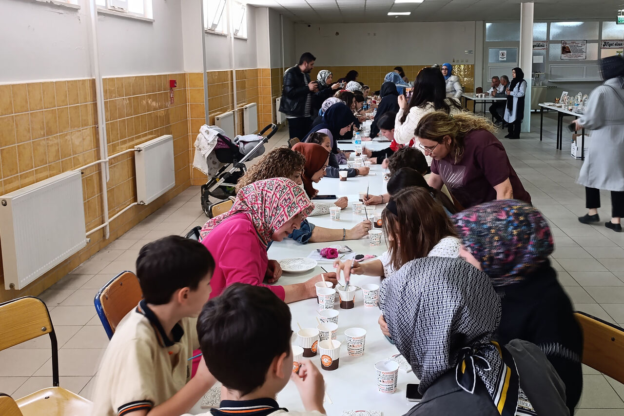 Bilgilendirmenin ardından öğrenciler ve veliler çinileri boyadılar.