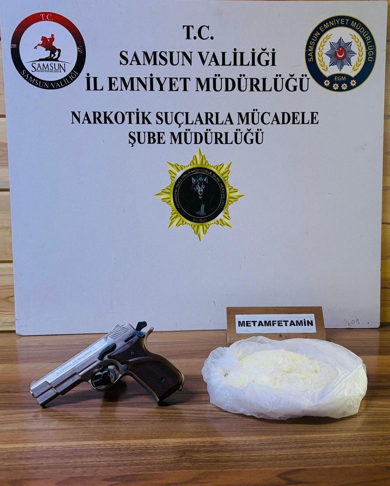 Samsun İl Emniyet Müdürlüğü Narkotik Suçlarla Mücadele Şube Müdürlüğü ekipleri, Havza’da uyuşturucu madde ticareti yaptığı değerlendirilen kişilere yönelik operasyon gerçekleştirdi. Titizlikle yürütülen çalışmalarda, 507 gram metamfetamin ile birlikte bir adet ruhsatsız tabanca ve iki adet tabanca fişeği ele geçirildi.