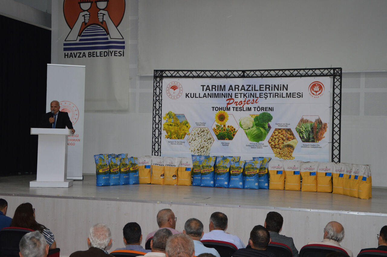 Kaymakam Mustafa Ayvat, Havza Belediye Kültür Merkezi'nde düzenlenen tohum dağıtım törenindeki konuşmasında, Havza'nın son dönemde tarımsal projelerden aldığı desteğin arttığını dile getirerek, "Tarlaların sarı süsü olan kanola ekim alanı ilçemizde her yıl artmakta. Gerek kuraklığa dayanıklılığı gerekse fiyat olarak çiftçilerimize önemli imkanlar sunan kanola ekiminin desteklenmesi için hazırlanan bu projeye katılarak destek veren tüm çiftçilerimize ve Bakanlığımız, il ve ilçe müdürlüğümüz ve ziraat odamıza teşekkür ediyorum." dedi.