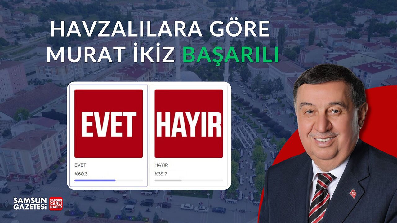 Samsun Medya Grubu, sosyal medya hesapları ve internet haber sitesi üzerinden, Havza Belediye Başkanı Murat İkiz'in görev performansına ilişkin anket düzenledi. Yerel yönetimlerin 2024-2029 döneminin ikinci yılında gerçekleştirilen ankete vatandaşlar yoğun ilgi gösterdi. Katılımcıların yüzde 60.3'ü “Evet”, yüzde 39.7'si ise “Hayır” oyu verdi.