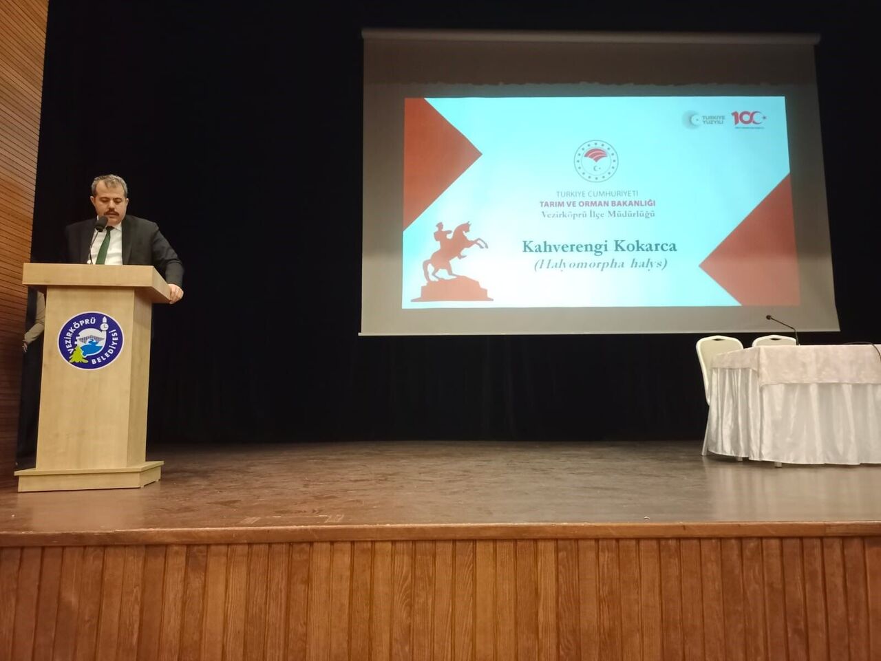 Kahverengi kokarca zararlısı ile ilgili yapılan çalışmalar hakkında bilgi veren İbrahim Sağlam, "Kahverengi kokarcayla mücadele çalışmalarının sürekli devam ediyor. 2025 yılında kahverengi kokarcayla mücadele için ilçe müdürlüklerimize, bakanlığımızın tahsis ettiği ödenekle Samsun Yatırım İzleme ve Koordinasyon Başkanlığı ve Samsun Büyükşehir Belediyesi katkılarıyla alınan kışlaklarda kullanılmak üzere 7 bin 18 litre biyosidal ürün, kışlaklardan bahçelere yöneldiği zaman cezbet-öldür mücadelesinde kullanılmak üzere 2 bin 453 litre bitki koruma ürünü, 8 bin 200 adet feromon, Samsun İl Sağlık Müdürlüğü'nün vermiş olduğu 22 bin 50 adet N95 maske, bin 800 adet tek kullanımlık tulum, bin 369 adet gözlük, 310 adet siperlik İlçe Tarım ve Orman Müdürlüklerimize verildi" dedi.