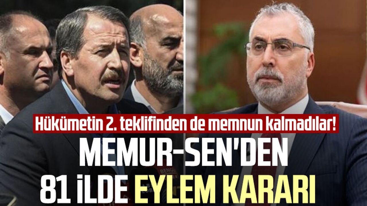 7. Dönem Kamu Toplu Sözleşme görüşmelerinde hükümetin ikinci teklifinden de memnun kalmayan Memur-Sen, 81 ilde eylem kararı aldı. Açıklamada, "Kamu İşveren Heyeti'nin kamu görevlilerine sunduğu yetersiz teklifi kabul etmiyor Ankara'da Çalışma ve Sosyal Güvenlik Bakanlığı önünde ve 81 ilde eş zamanlı olarak protesto ediyoruz" ifadeleri kullanıldı.