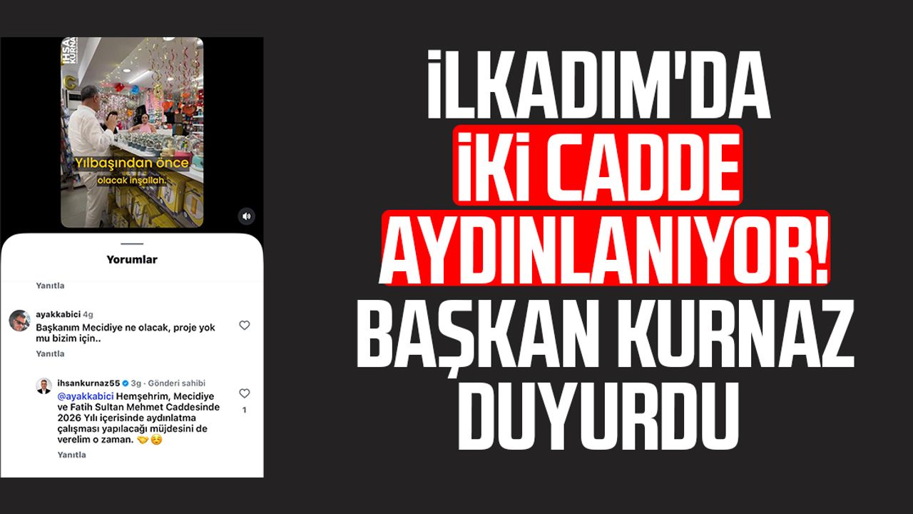 Sosyal medya üzerinden yapılan paylaşımda bir vatandaş, “Başkanım Mecidiye ne olacak, proje yok mu bizim için?” ifadeleriyle talebini dile getirdi. Yorumlara bizzat yanıt veren İlkadım Belediye Başkanı İhsan Kurnaz, Mecidiye ile Fatih Sultan Mehmet Caddesi’nde 2026 yılı içerisinde aydınlatma çalışması yapılacağını açıkladı.