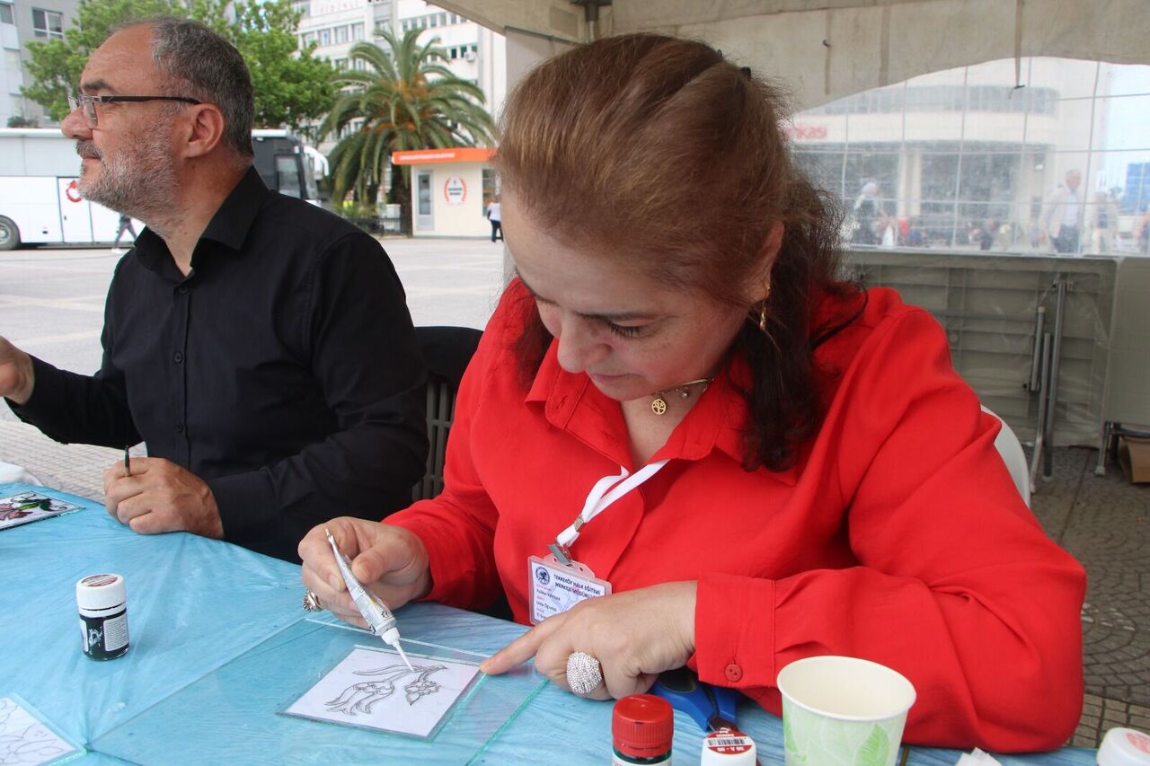 İlkadım Halk Eğitim Merkezi Müdürü Muhammet Usta ise, kurdukları çadırların özel bir anlam taşıdığını belirterek, “Bu proje, İçişleri Bakanlığı’nın kadın istihdamına yönelik hibesiyle hayata geçirildi. Atakum, Canik, İlkadım ve Tekkeköy Halk Eğitim Merkezleri ortaklaşa hazırladığımız sergide; el sanatları, giyim, kültürel sanatlar ve Antakya’ya özgü ürünler yer alıyor. Etkinlikte halk oyunları, konser ve ney dinletileri de mevcut. İşsiz kadınlarımız bu proje kapsamında Trabzon hasırı ve telkari ürünleri üretmeye başladılar. Elde edilen gelirler, Toplumsal Eğitim Merkezi ailelerine aktarılacak. Kursiyerlerimiz edindikleri becerilerle kuyumculuk sektöründe çalışmaya başladı. Bu kurs, istihdam garantili olup, sektörde firmalar yetiştirdiğimiz kursiyerleri istihdam ediyor. Kadınlarımız için umut verici ve hayırlı bir gelişme” dedi.