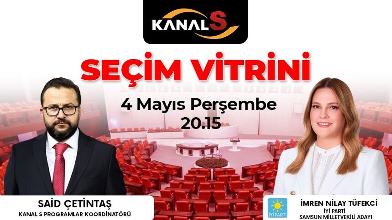 Kanal S Yayın Koordinatörü Said Çetintaş'ın moderatörlüğünü yaptığı #SeçimVitrini programına 4 Mayıs Perşembe günü saat 20.15'te İYİ Parti Samsun Milletvekili Adayı İmren Nilay Tüfekci konuk oluyor.