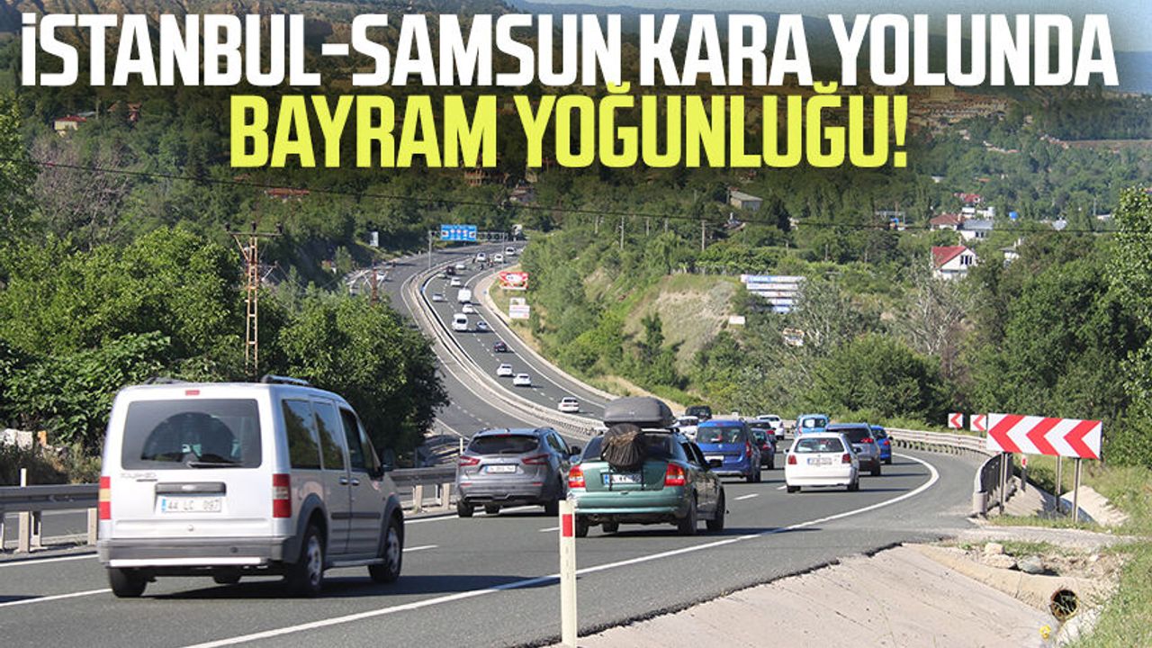 Bayram tatilini memleketlerinde geçirmek için İstanbul ve çevre illerden araçlarıyla hareket eden vatandaşların D-100 kara yolundan Samsun istikametine geçişleri devam ediyor.